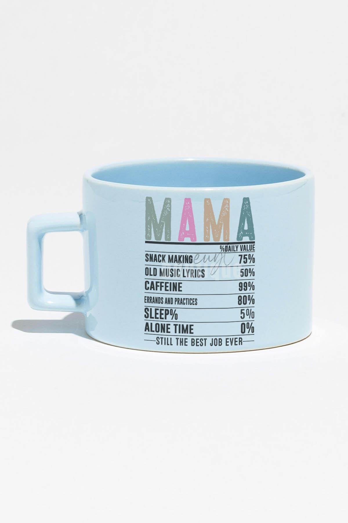 Mother Besin Tablosu Baskılı Anneler Günü Hediyelik Mavi Dikdörtgen Kulplu Fincan Kupa Bardak