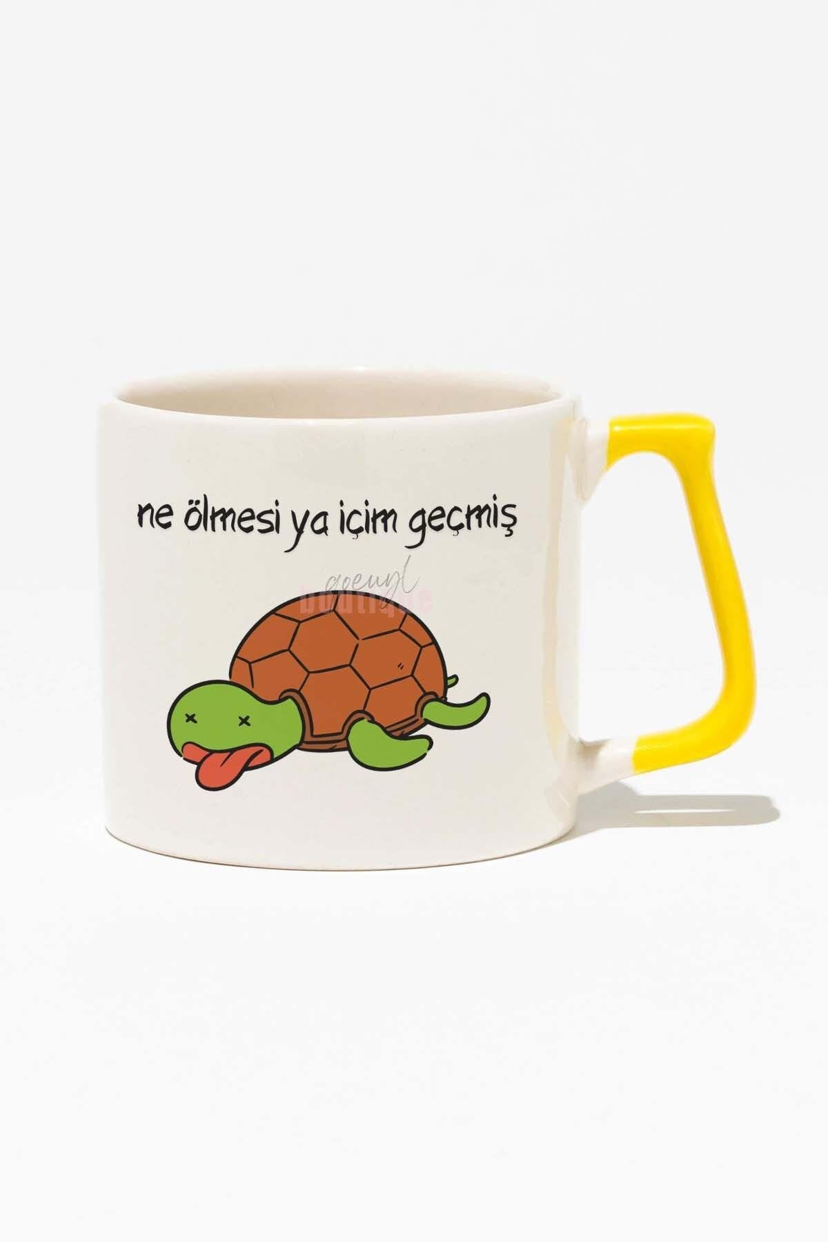 Ne Ölmesi Ya İçim Geçmiş Kaplumbağa Komik Hediyelik Baskılı Sarı Kulplu Modern Seramik Kupa