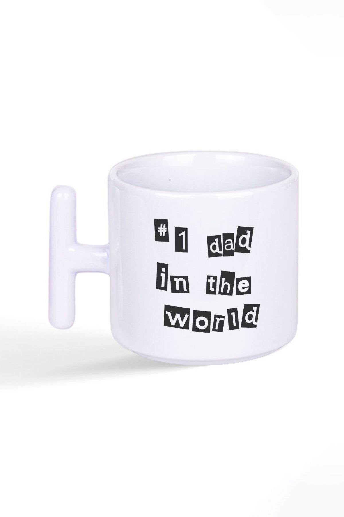 Number 1 Dad In The World Babalar Günü Hediye Baskılı Latte Fincanı T Kulplu Kupa Bardak