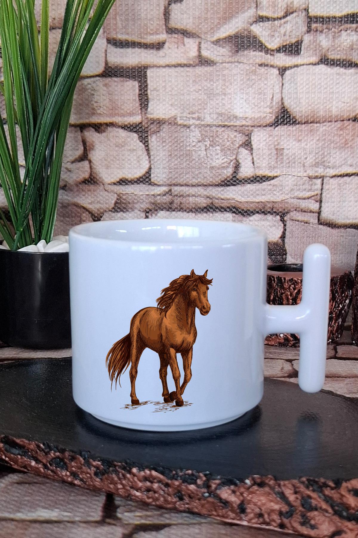Özgür Ruh At Baskılı T Kulplu Latte Fincanı Kupa Bardak