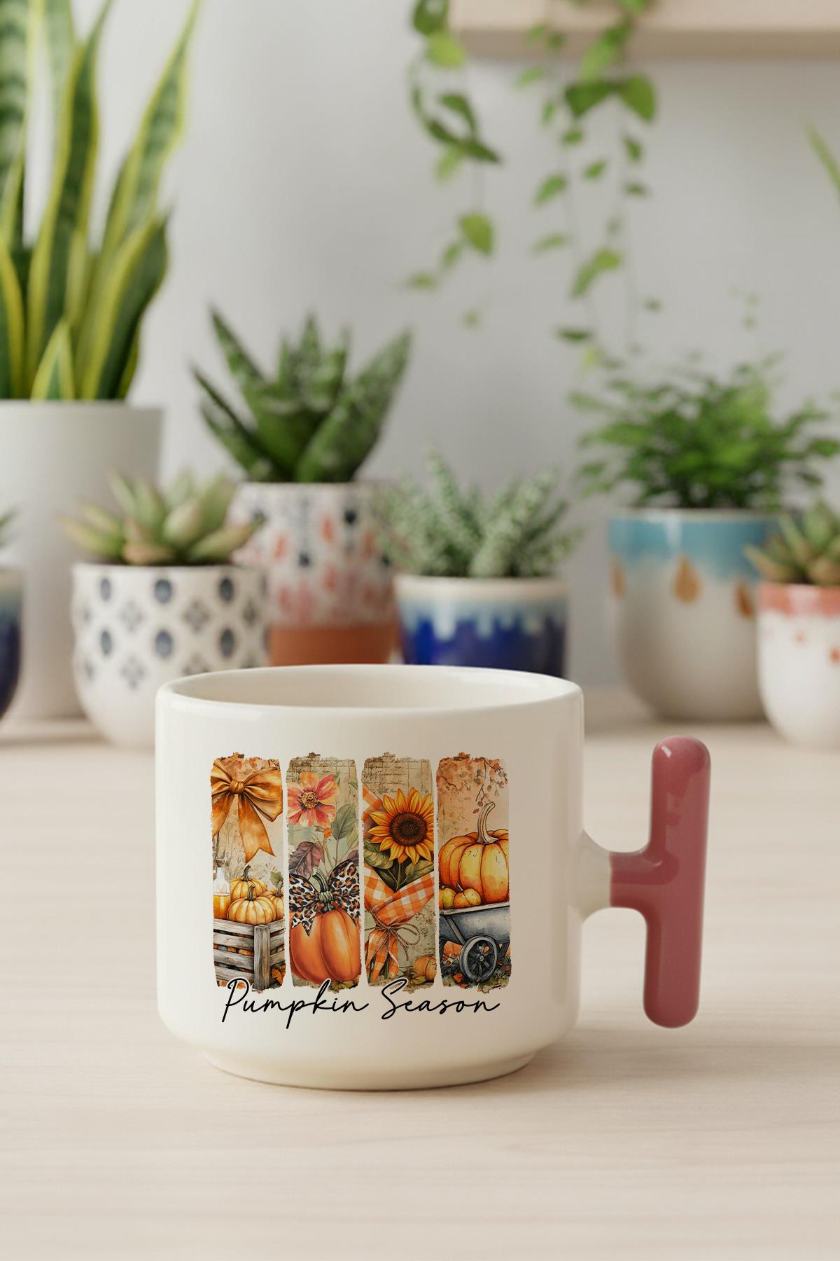 Pumpkin Season Baskılı Hediyelik T Kulplu Latte Fincanı Kupa Bardak