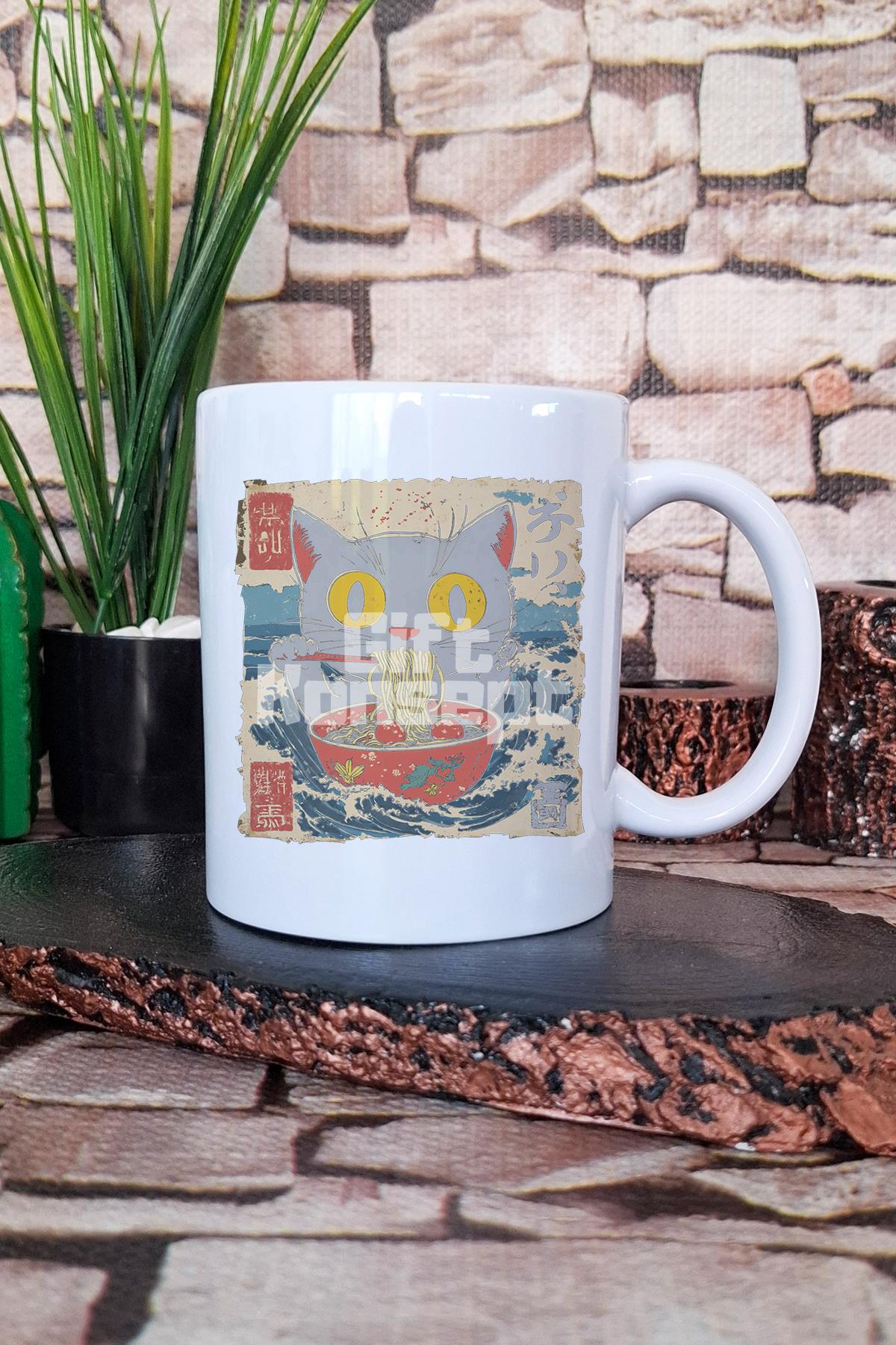 Ramen İlüstrasyon Kedi 7 Baskılı Japon Sanatı Kedi Anime Hediye Baskılı Kupa Bardak