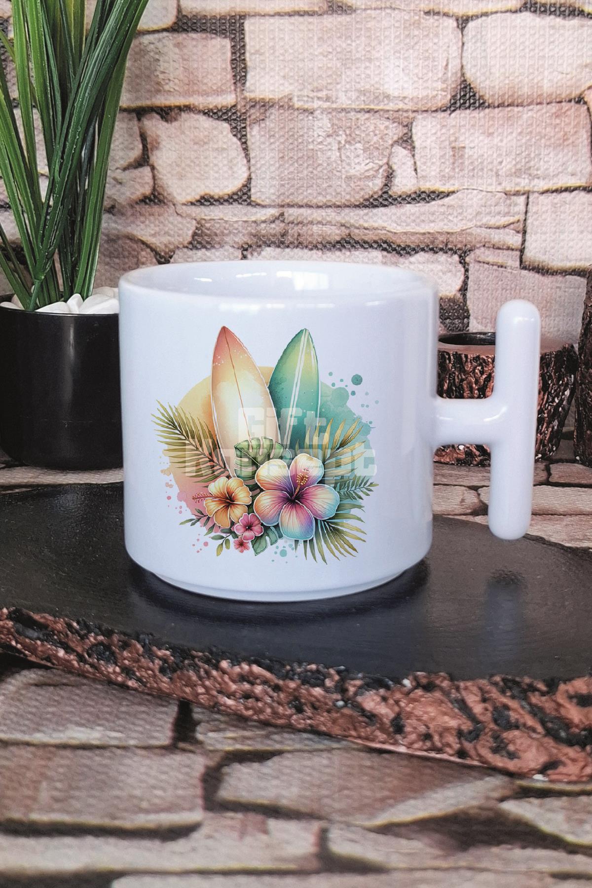 Renkli Okyanus Çiçekler Baskılı T Kulplu Latte Fincanı Kupa Bardak