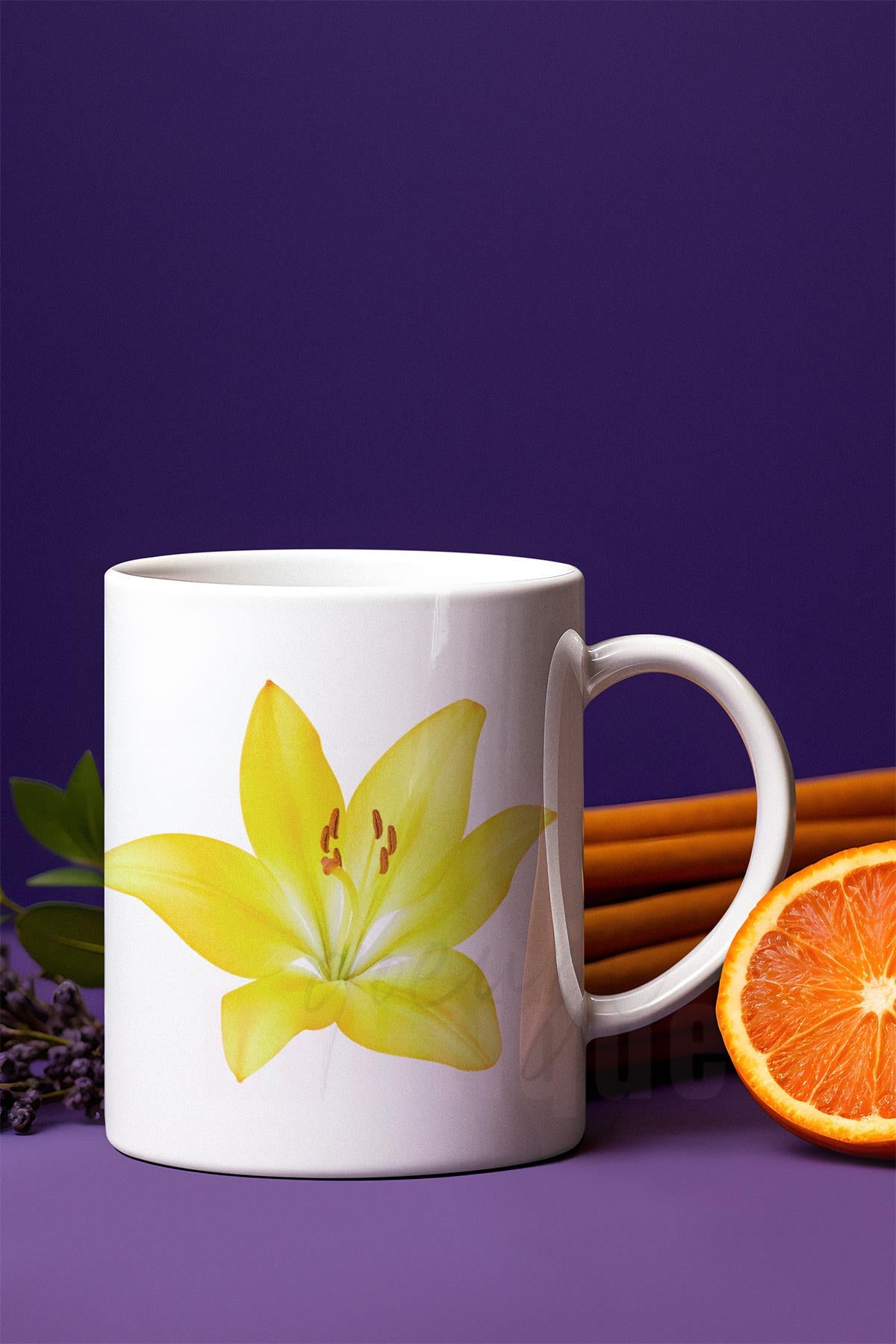 Renkli Zambak Çiçek Baskılı Hediyelik Beyaz Kupa Bardak