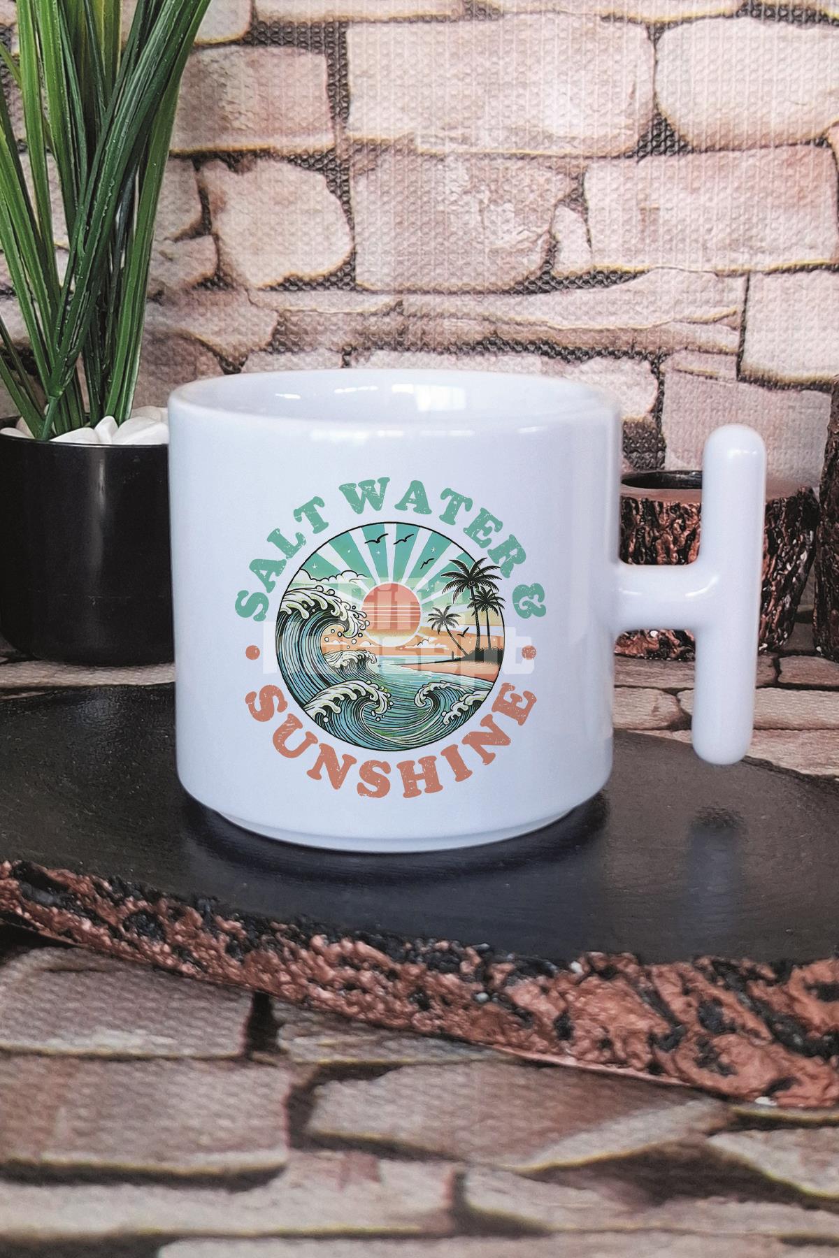 Salt Water And Sunshine Baskılı T Kulplu Latte Fincanı Kupa Bardak