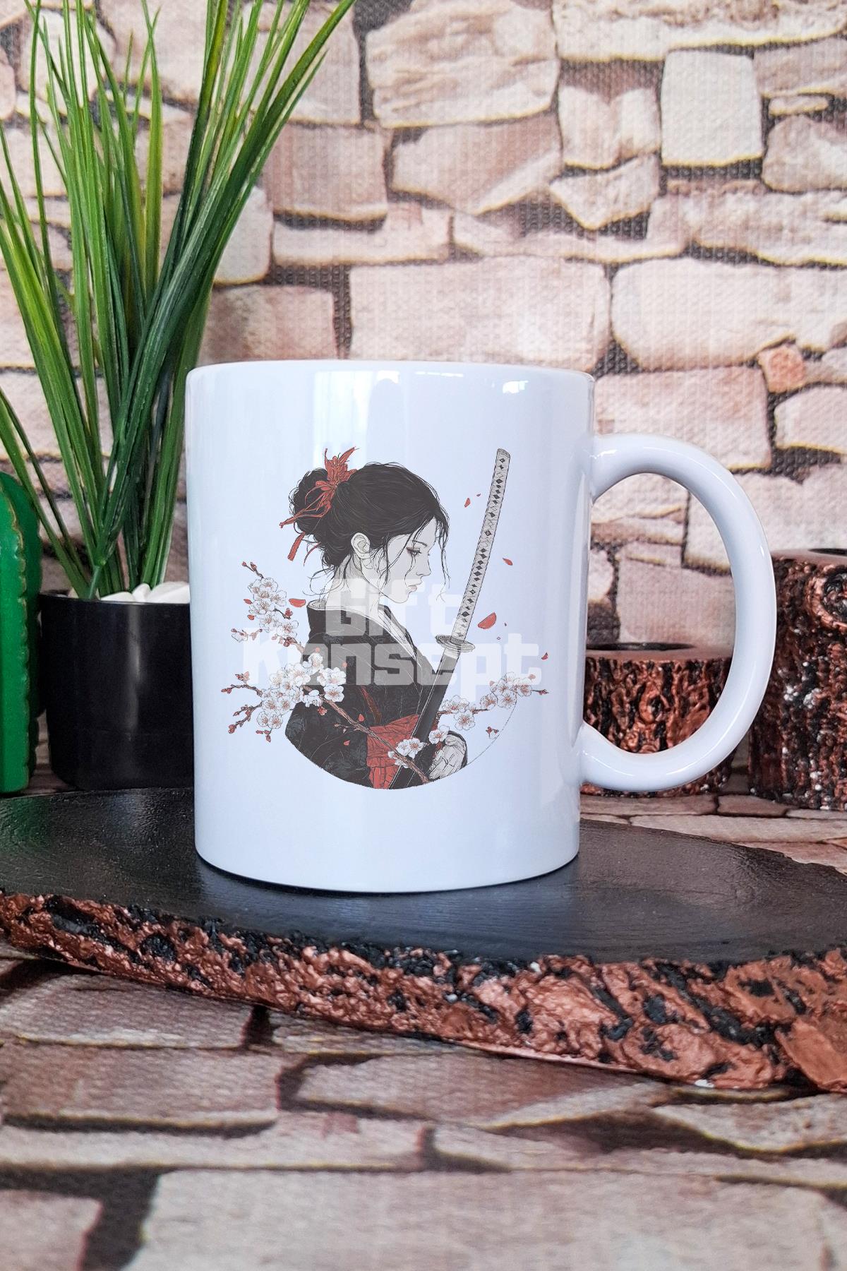 Samuray Kızı 4 Baskılı Anime Karakteri Japon Samuray Hediyelik Baskılı Çay Kahve Sunum Kupa Bardak