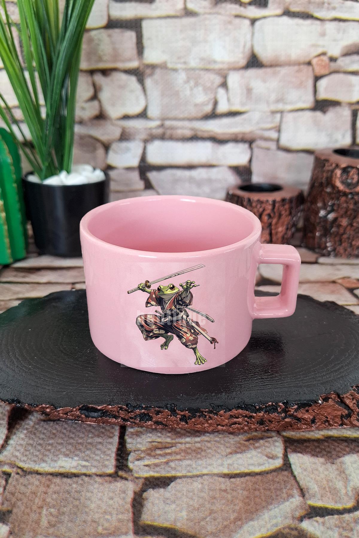 Samuray Kurbağa Baskılı Japon Sanatı Anime Manga İlhamı Kare Kulplu Fincan Mavi Kupa Bardak
