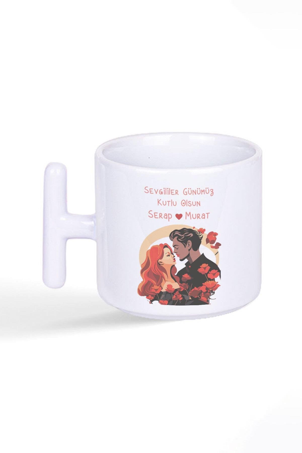 Sevgililer Günü Özel Tasarım Kişiselleştirilebilir Baskılı Latte Fincanı T Kulplu Kupa Bardak