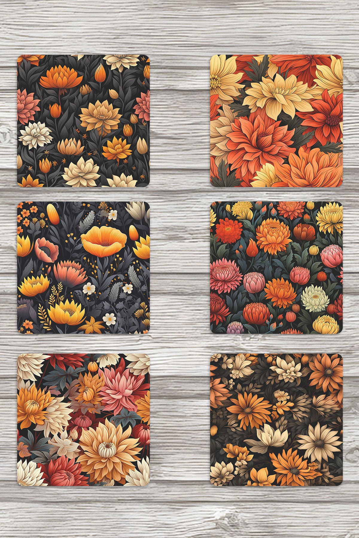 Sonbahar Çiçekleri No:2 Baskılı 6'lı Set Dekoratif Ahşap Kare Bardak Altlığı