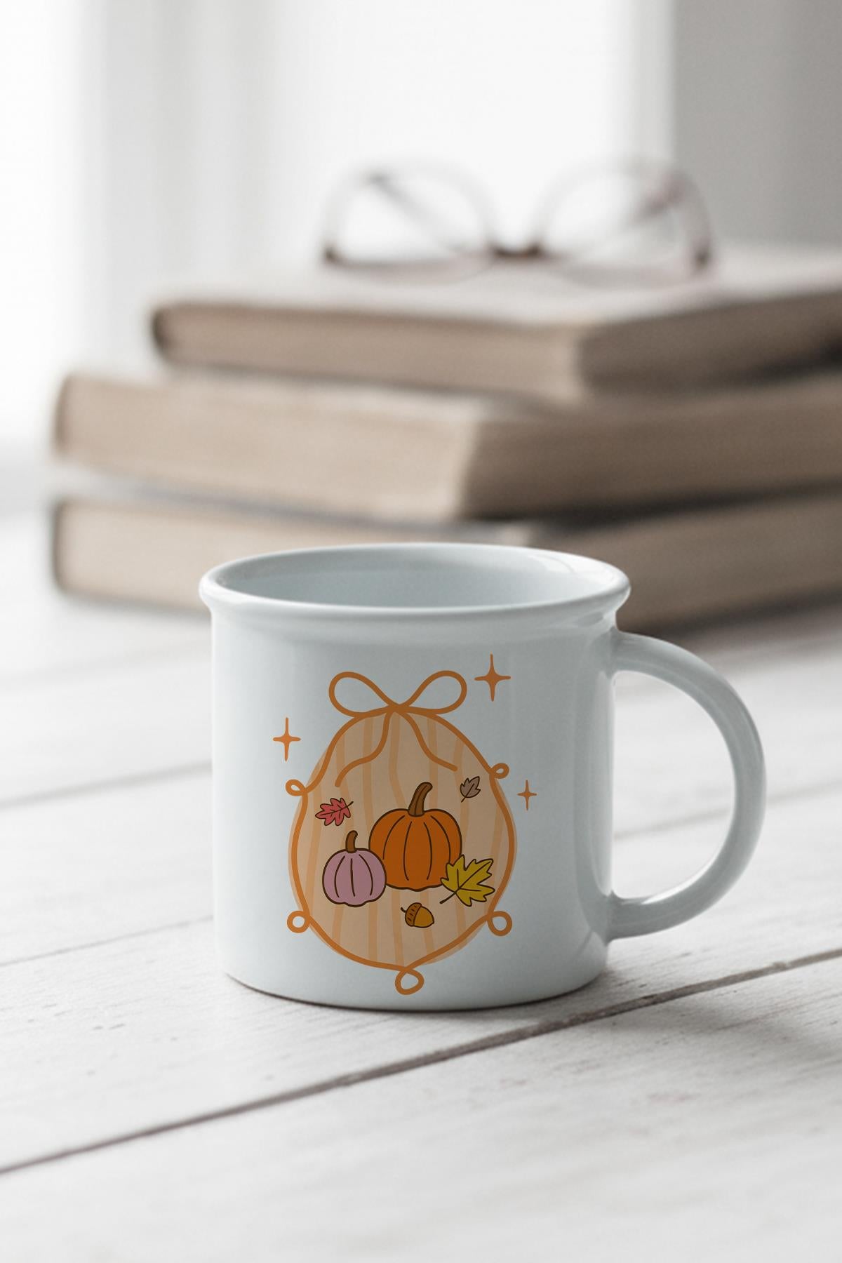 Sonbahar Temalı Balkabakları Baskılı Enamel Görünümlü Seramik Vintage Kupa Bardak