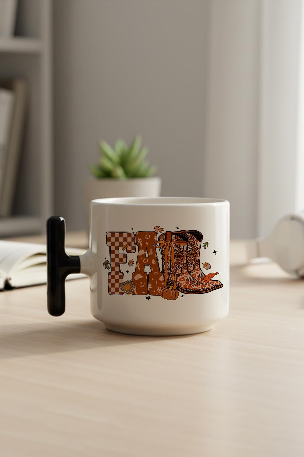Sonbahar Temalı Fall Baskılı Hediyelik T Kulplu Latte Fincanı Kupa Bardak