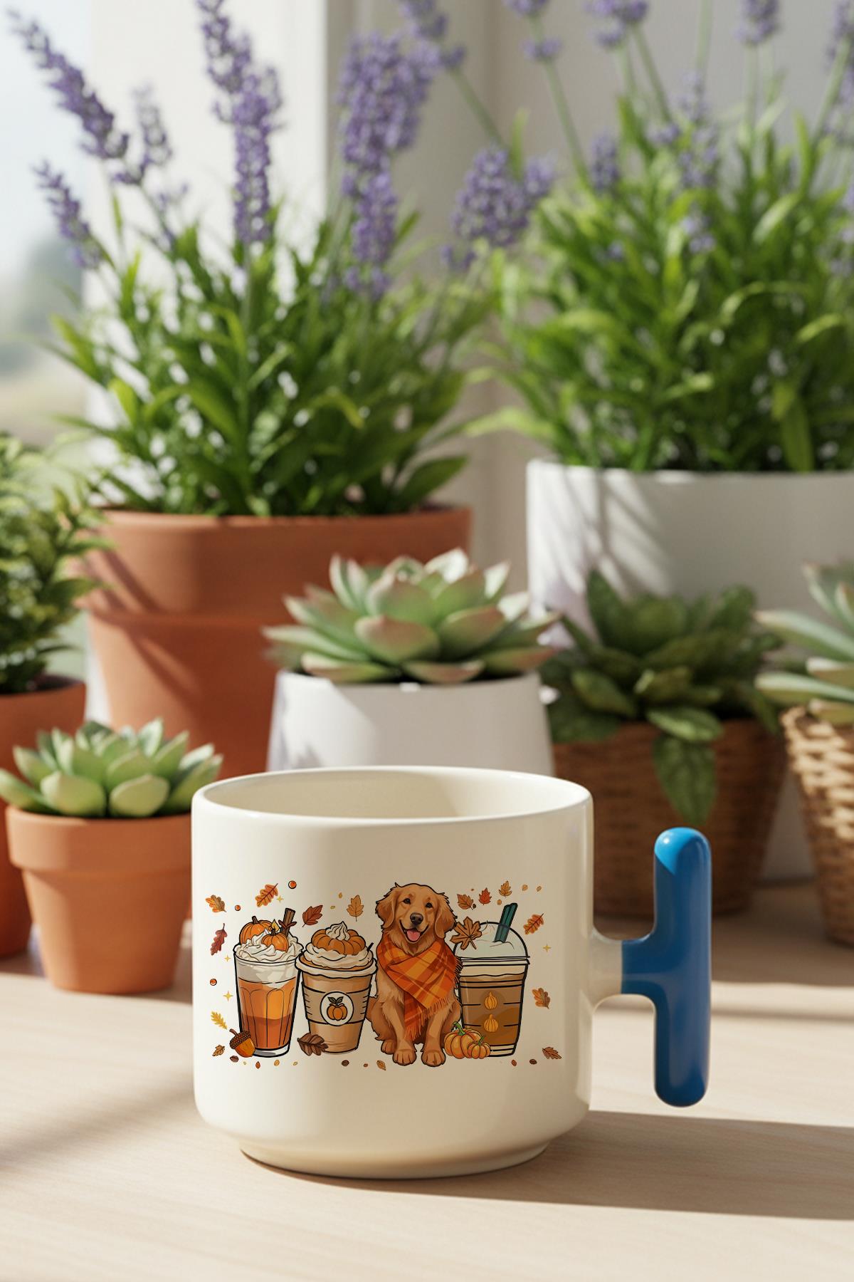 Sonbahar Temalı Kahveler No:4 Baskılı Hediyelik T Kulplu Latte Fincanı Kupa Bardak