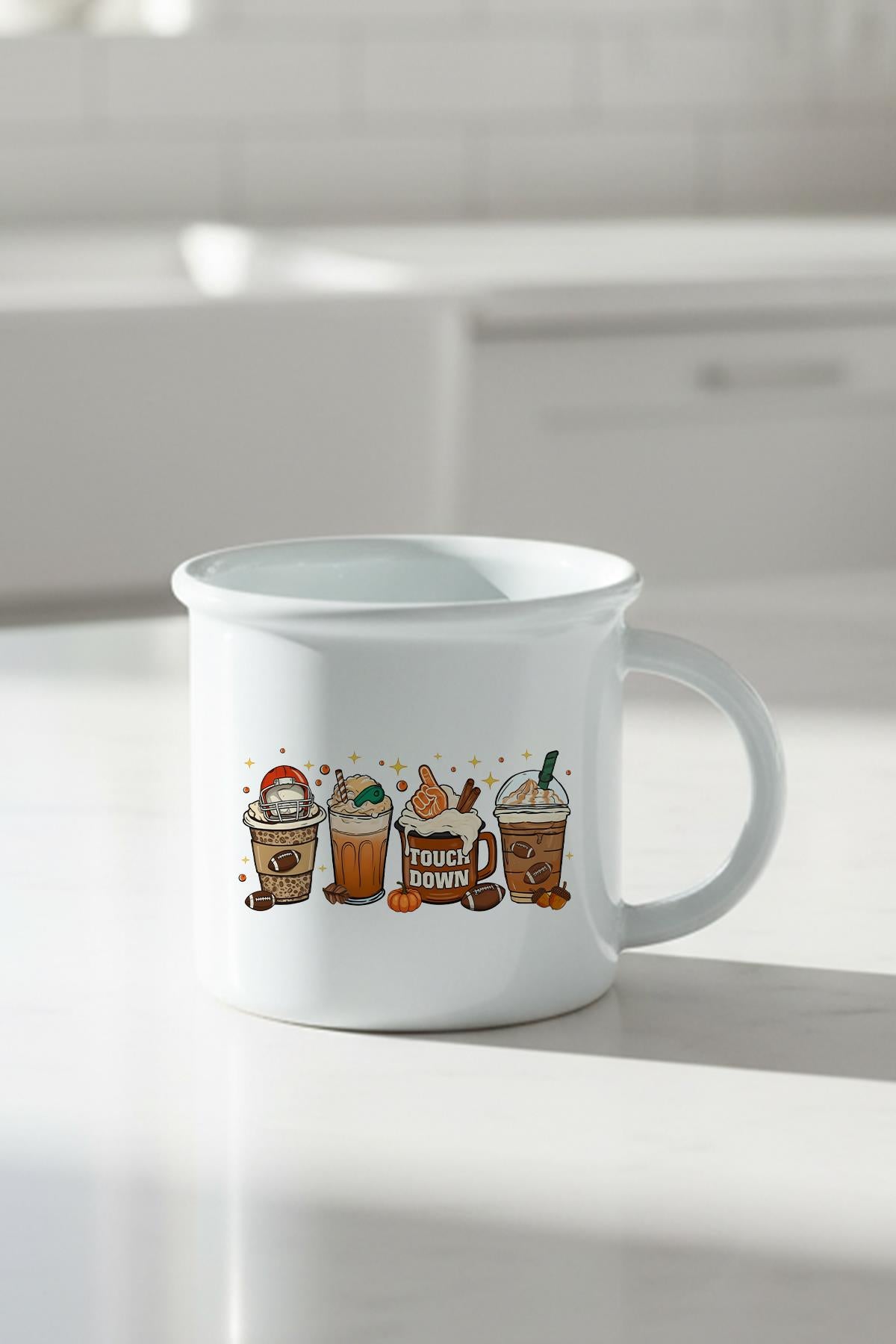 Sonbahar Temalı Kahveler No:8 Baskılı Enamel Görünümlü Seramik Vintage Kupa Bardak
