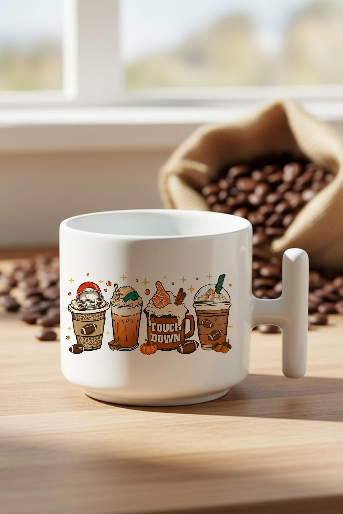 Sonbahar Temalı Kahveler No:8 Baskılı Hediyelik T Kulplu Latte Fincanı Kupa Bardak