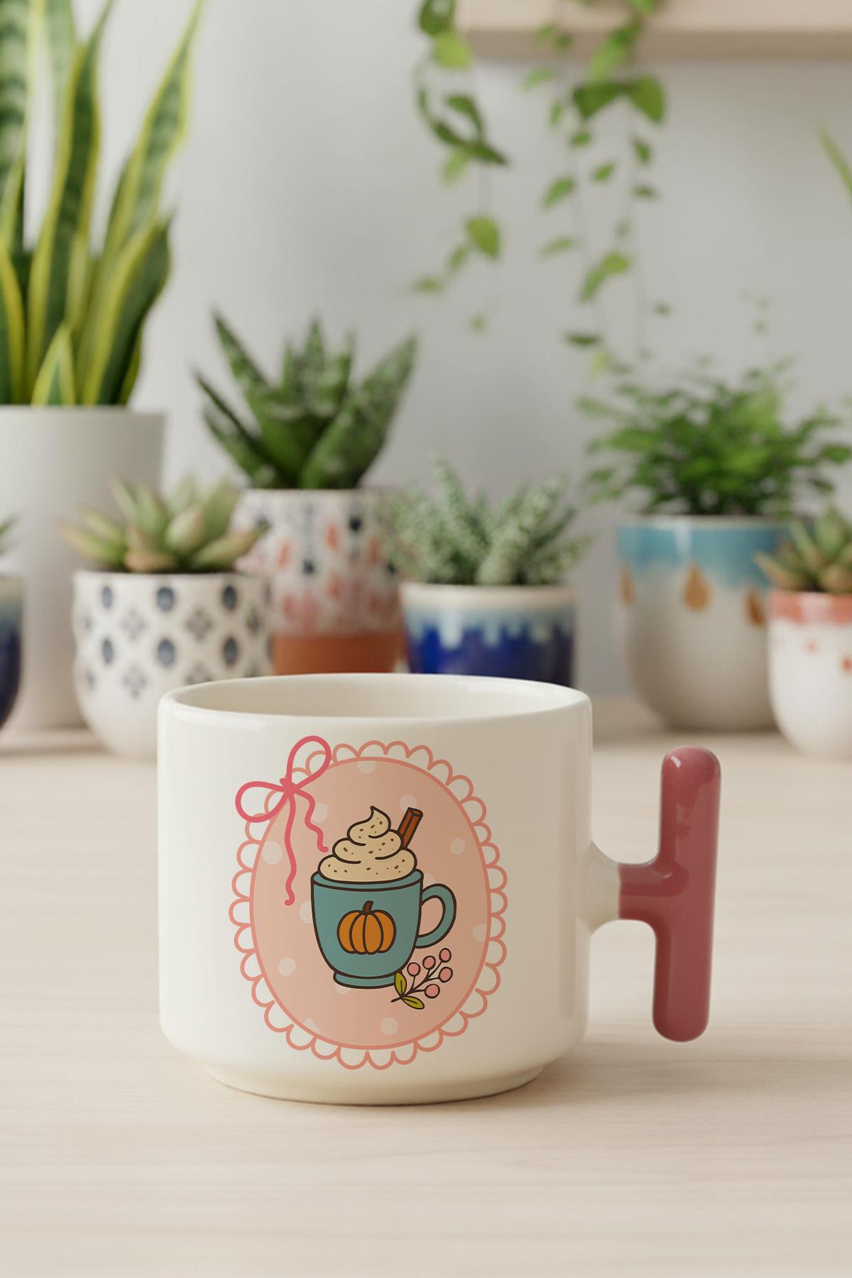 Sonbahar Temalı Pumpkin Spice Latte Baskılı Hediyelik T Kulplu Latte Fincanı Kupa Bardak