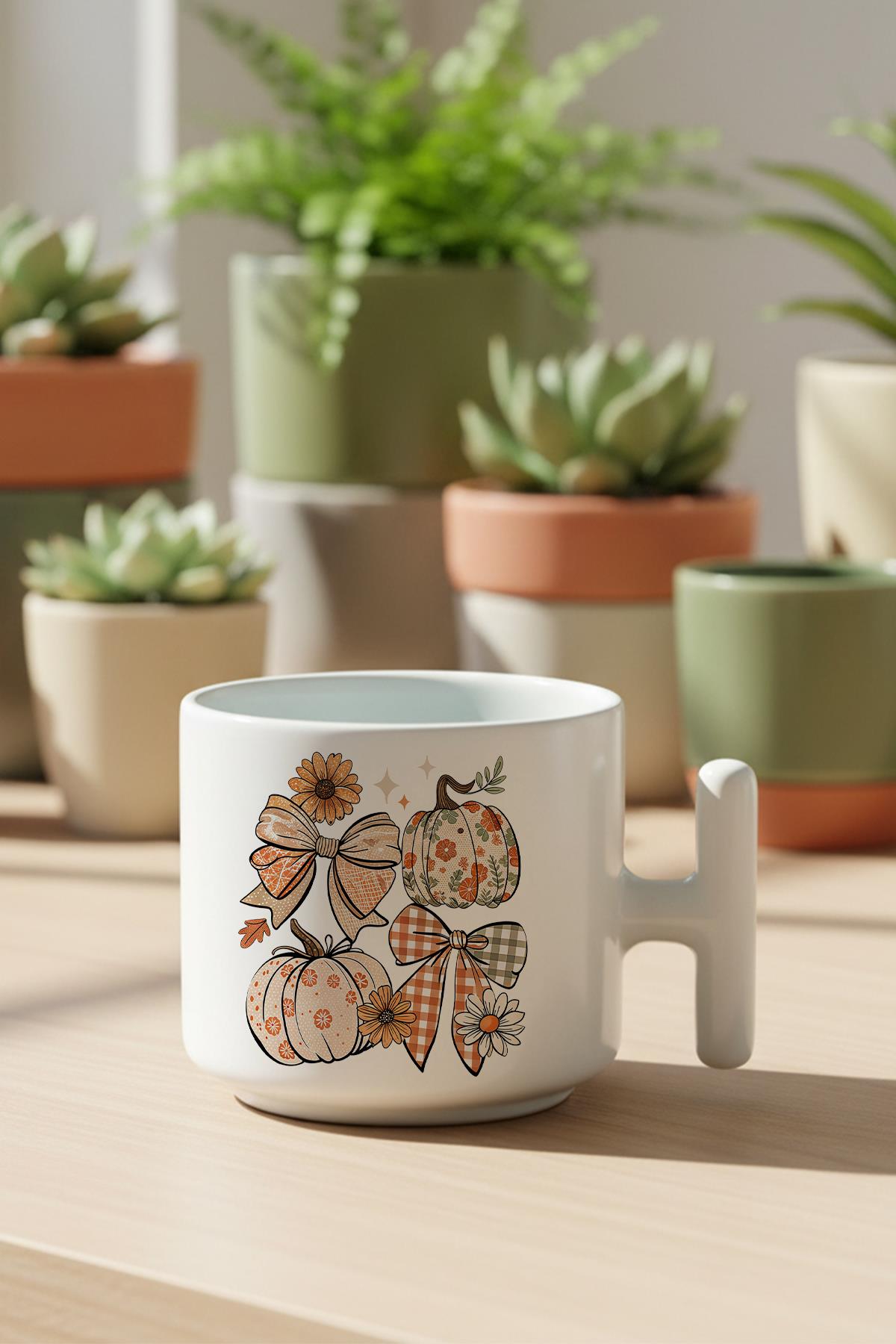 Sonbahar Teması Pumpkin Couqette Baskılı Hediyelik T Kulplu Latte Fincanı Kupa Bardak