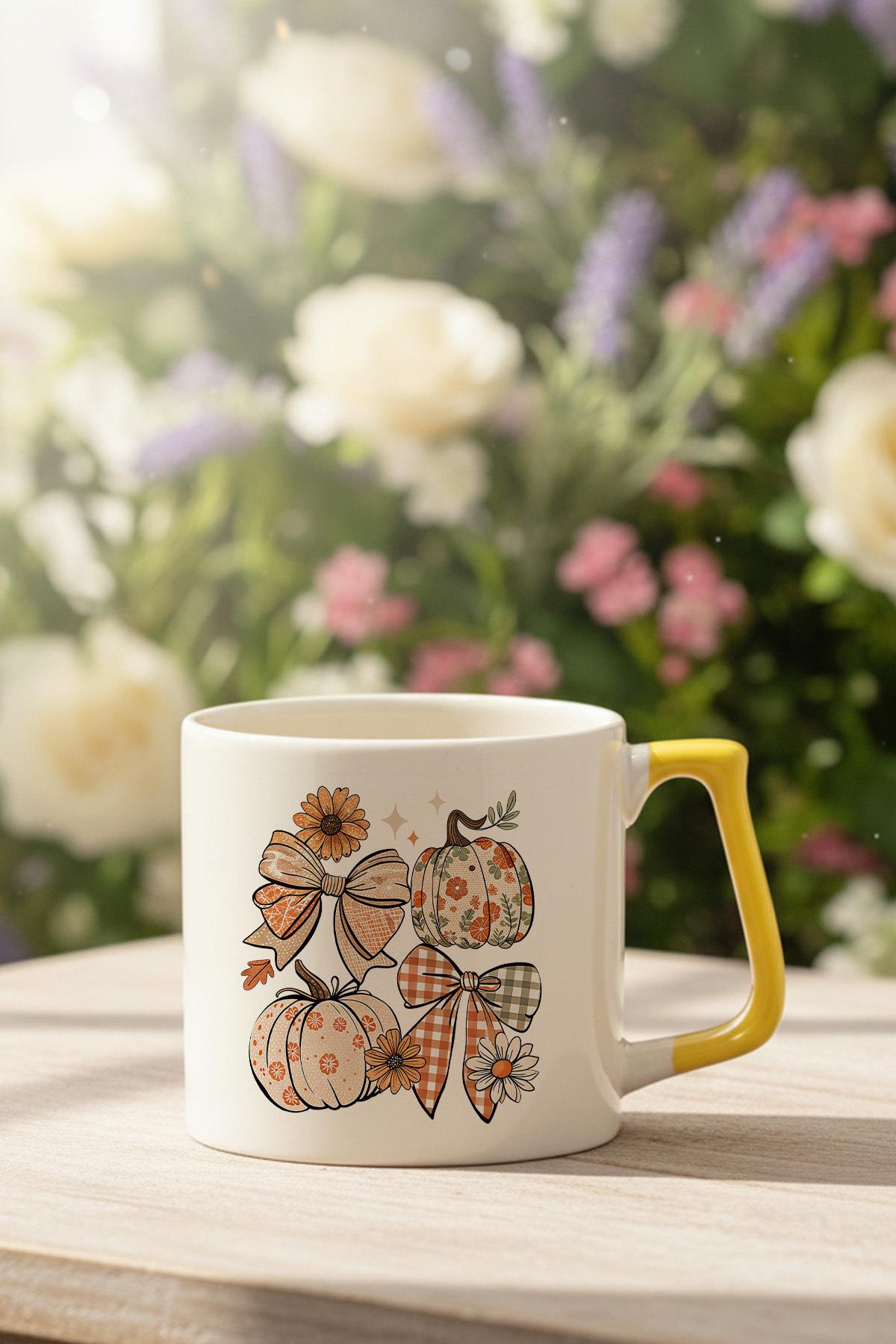Sonbahar Teması Pumpkin Couqette Baskılı Sarı D Kulplu Kupa Bardak