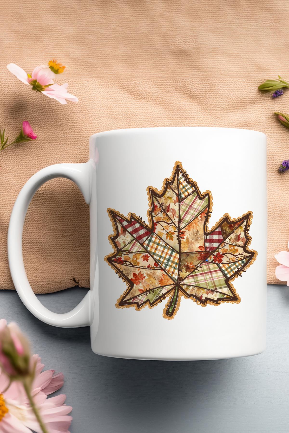Sonbahar Yaprak Baskılı Hediyelik Kupa Bardak