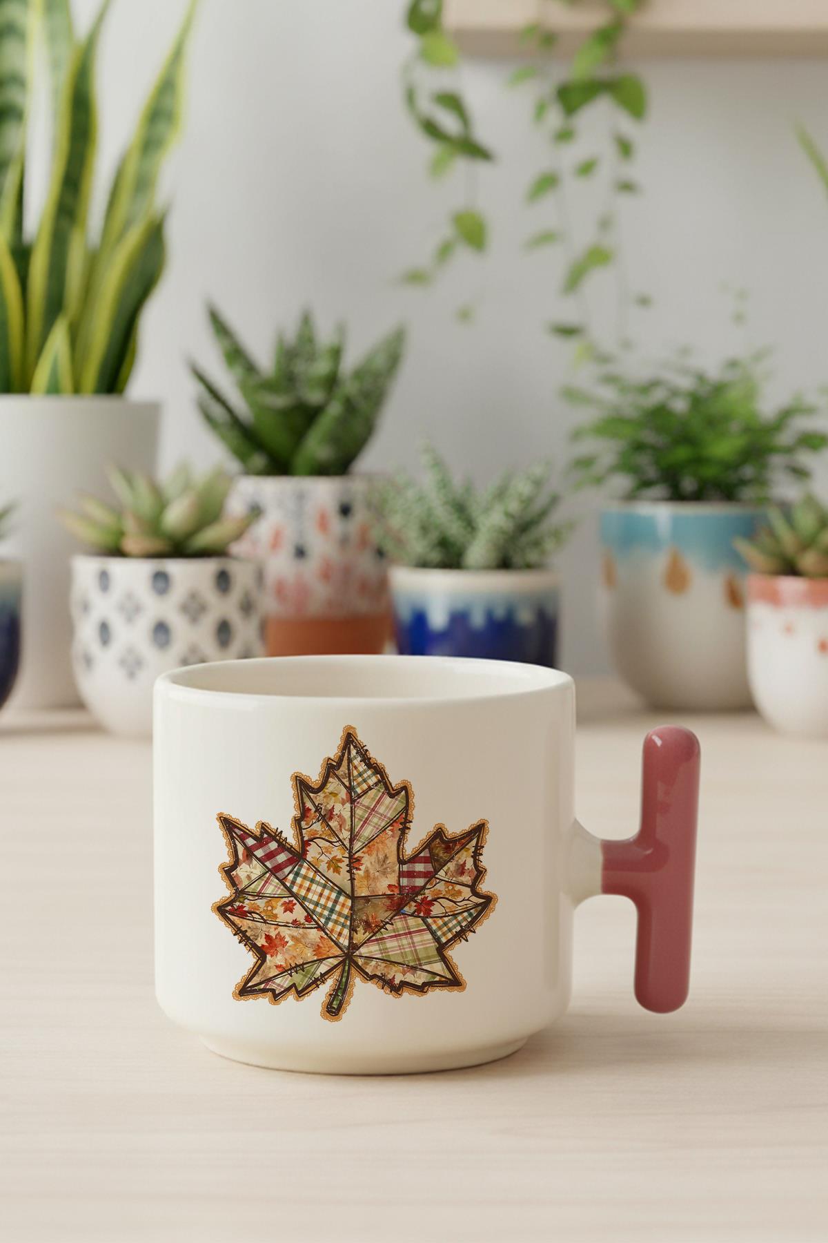 Sonbahar Yaprak Baskılı Hediyelik T Kulplu Latte Fincanı Kupa Bardak