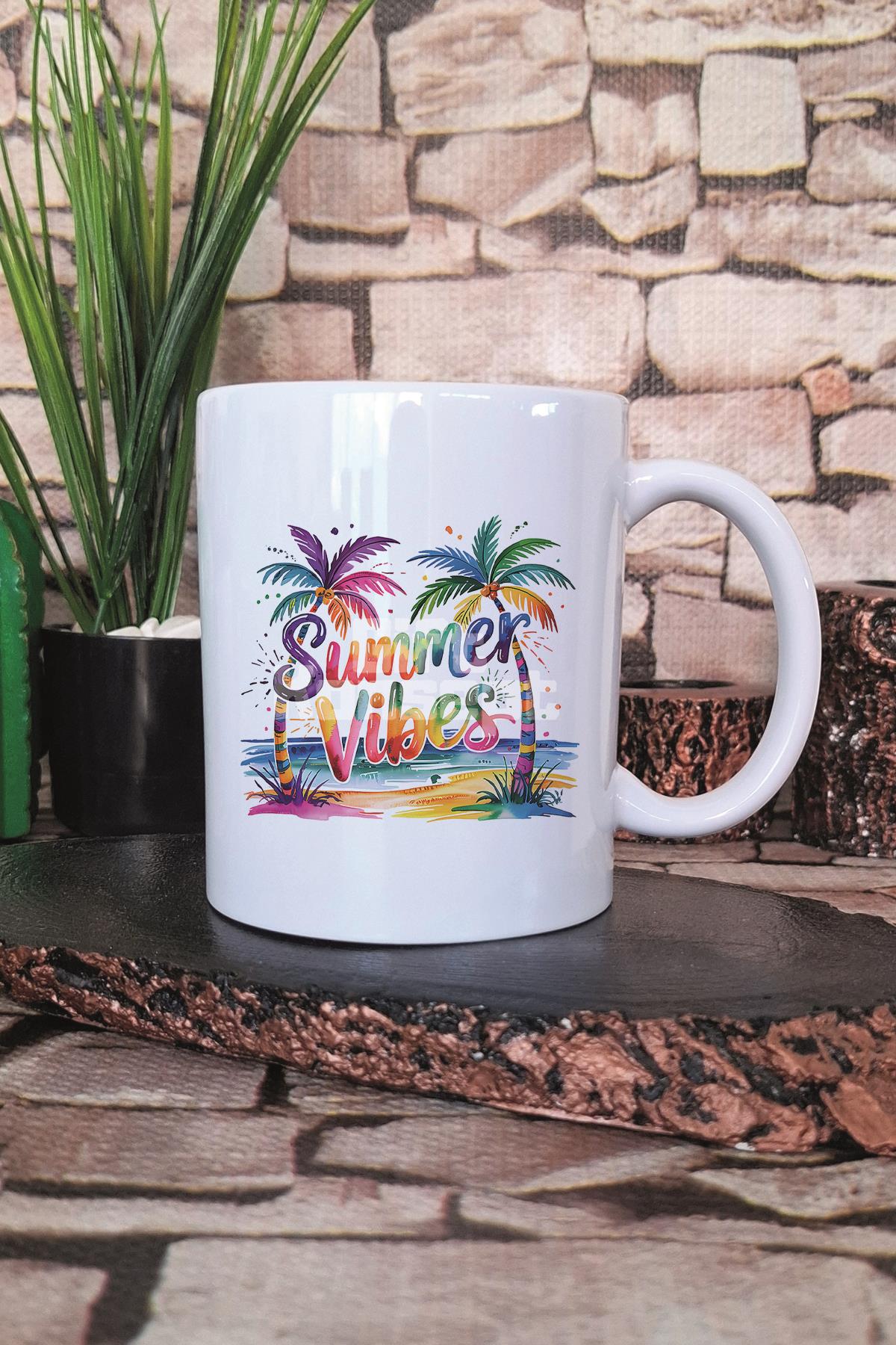 Summer Vibes Renkli Palmiyeler Baskılı Hediyelik Kupa Bardak
