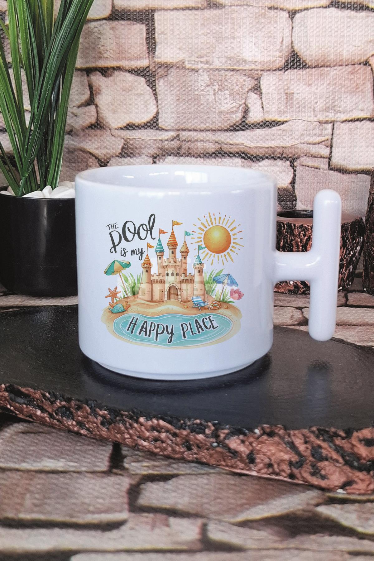The Pool Is My Happy Place Baskılı T Kulplu Latte Fincanı Kupa Bardak