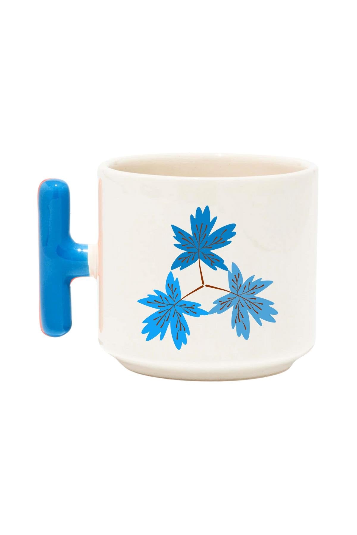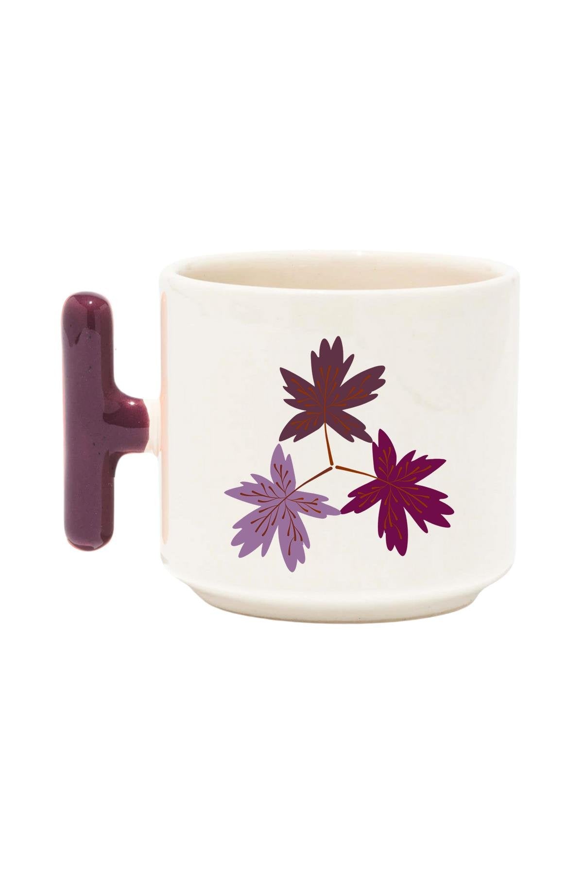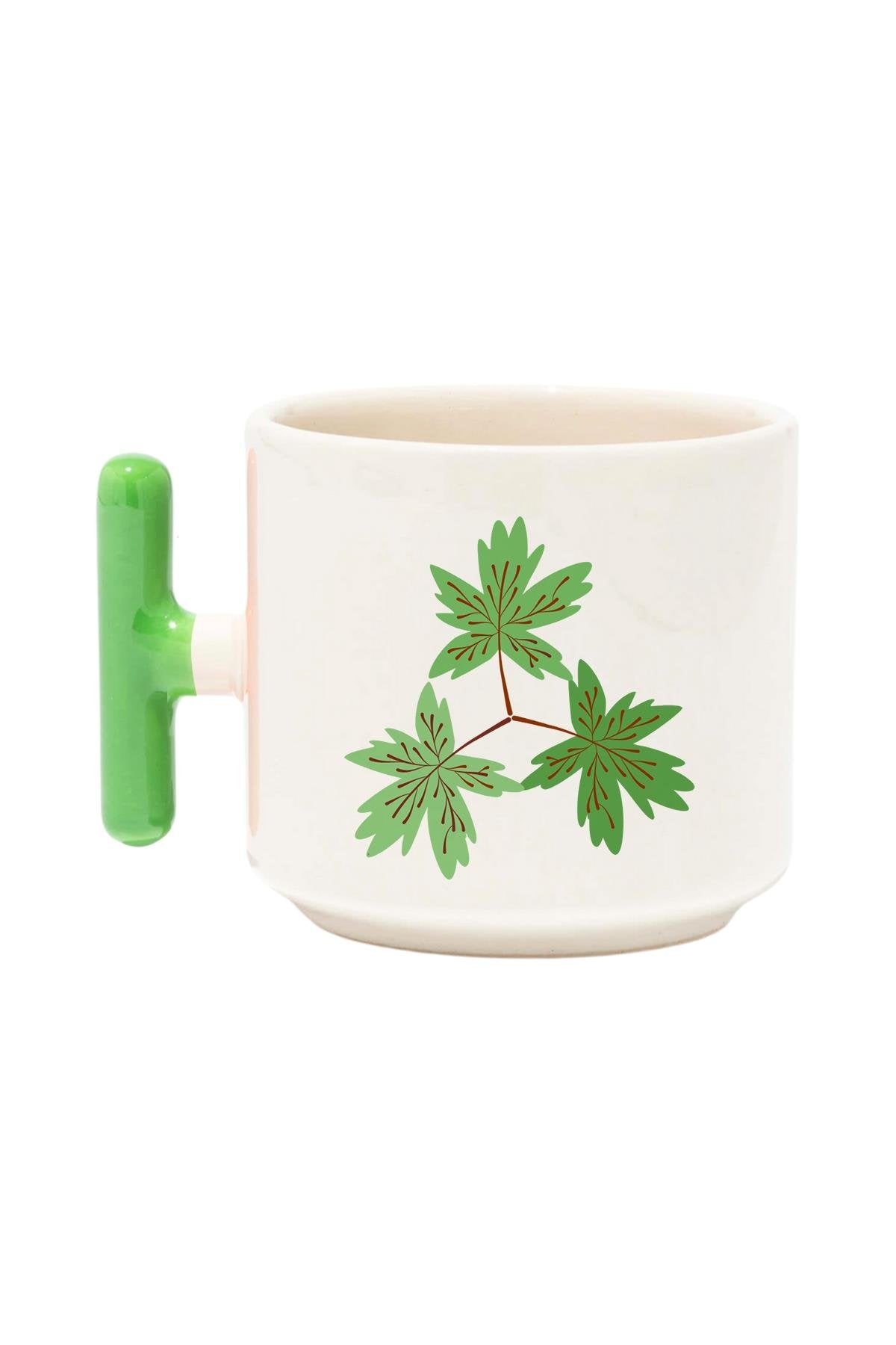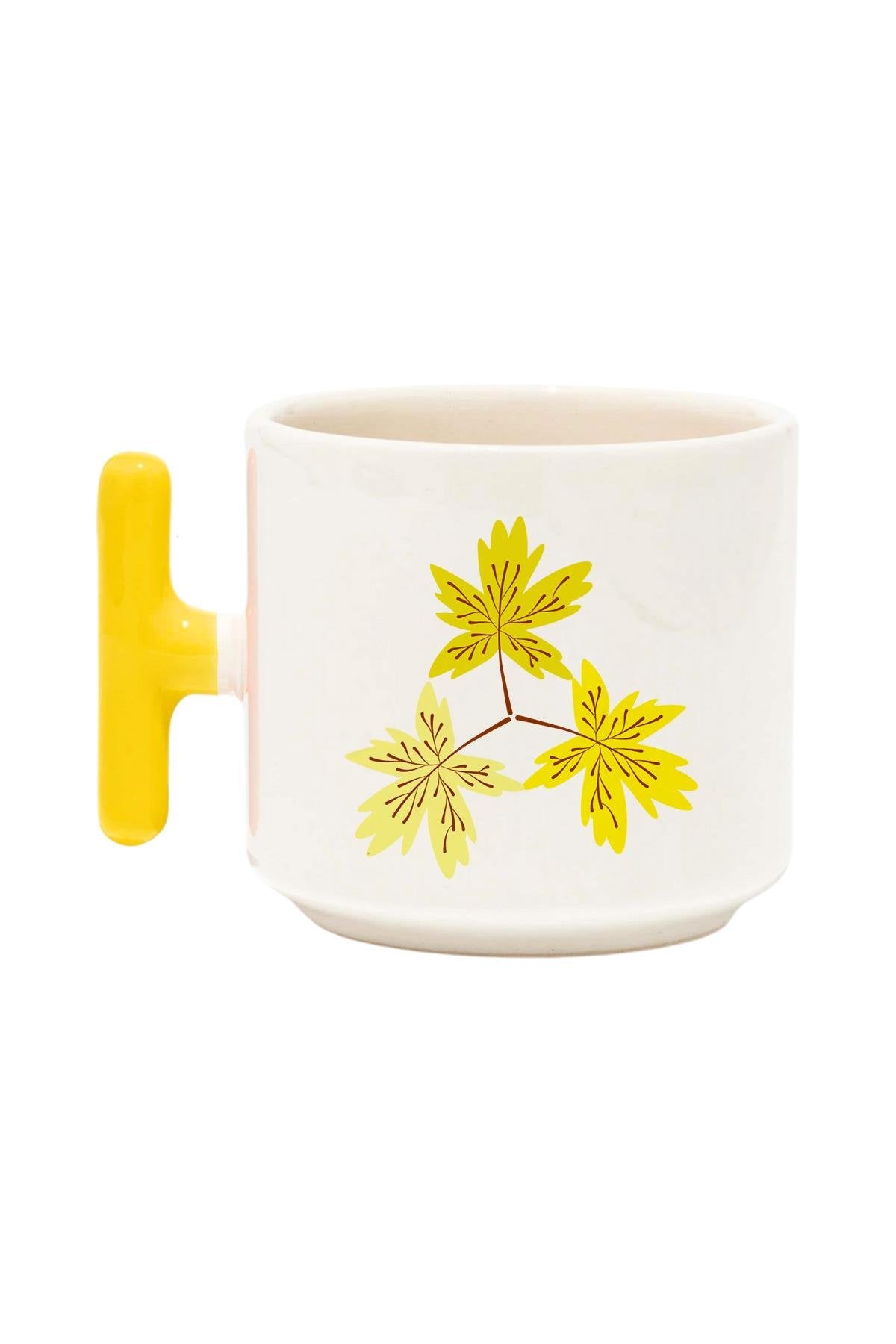 Üç Yaprak Baskılı Renkli T Kulplu Hediyelik Latte Fincanı Kupa Bardak