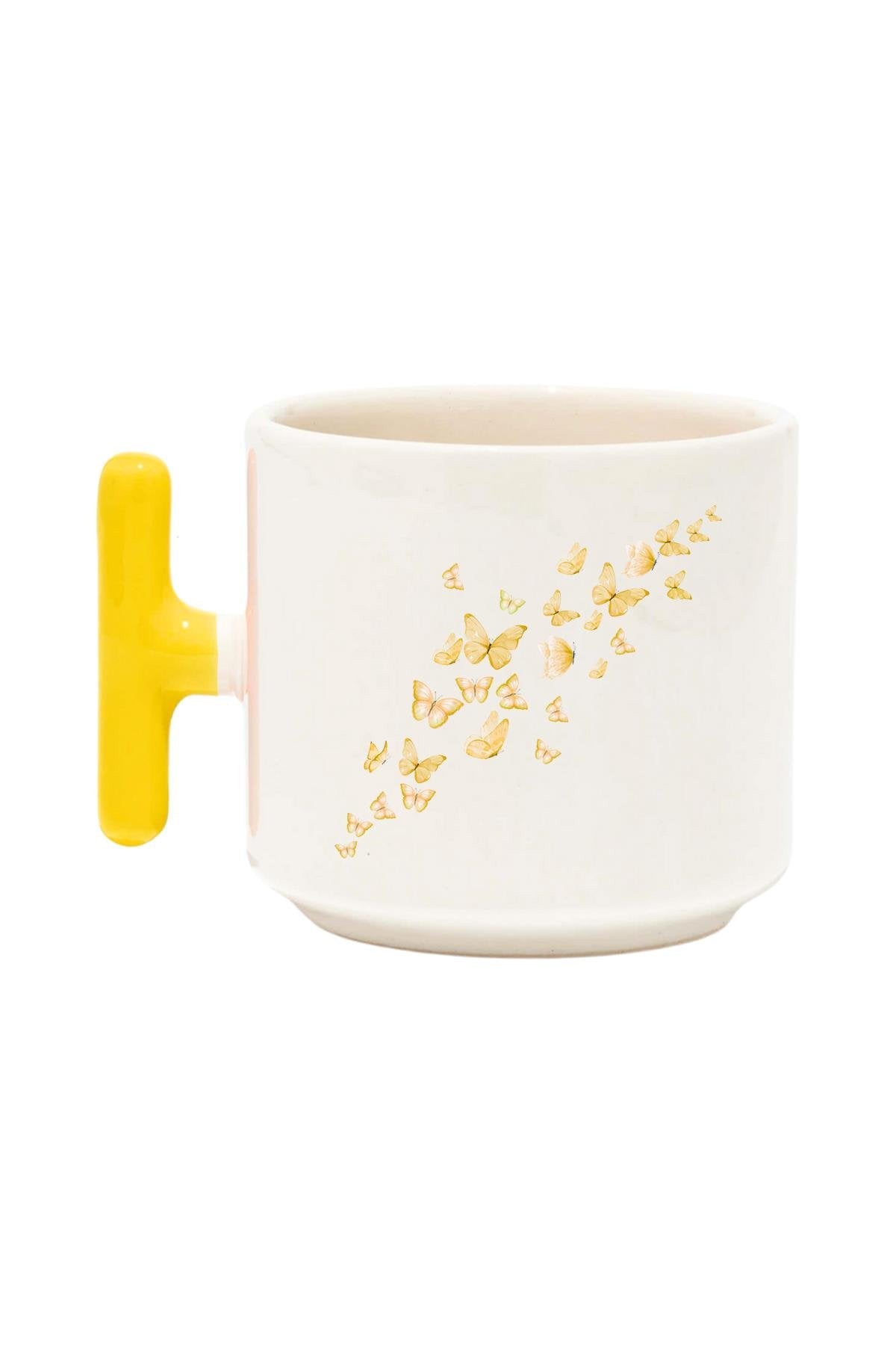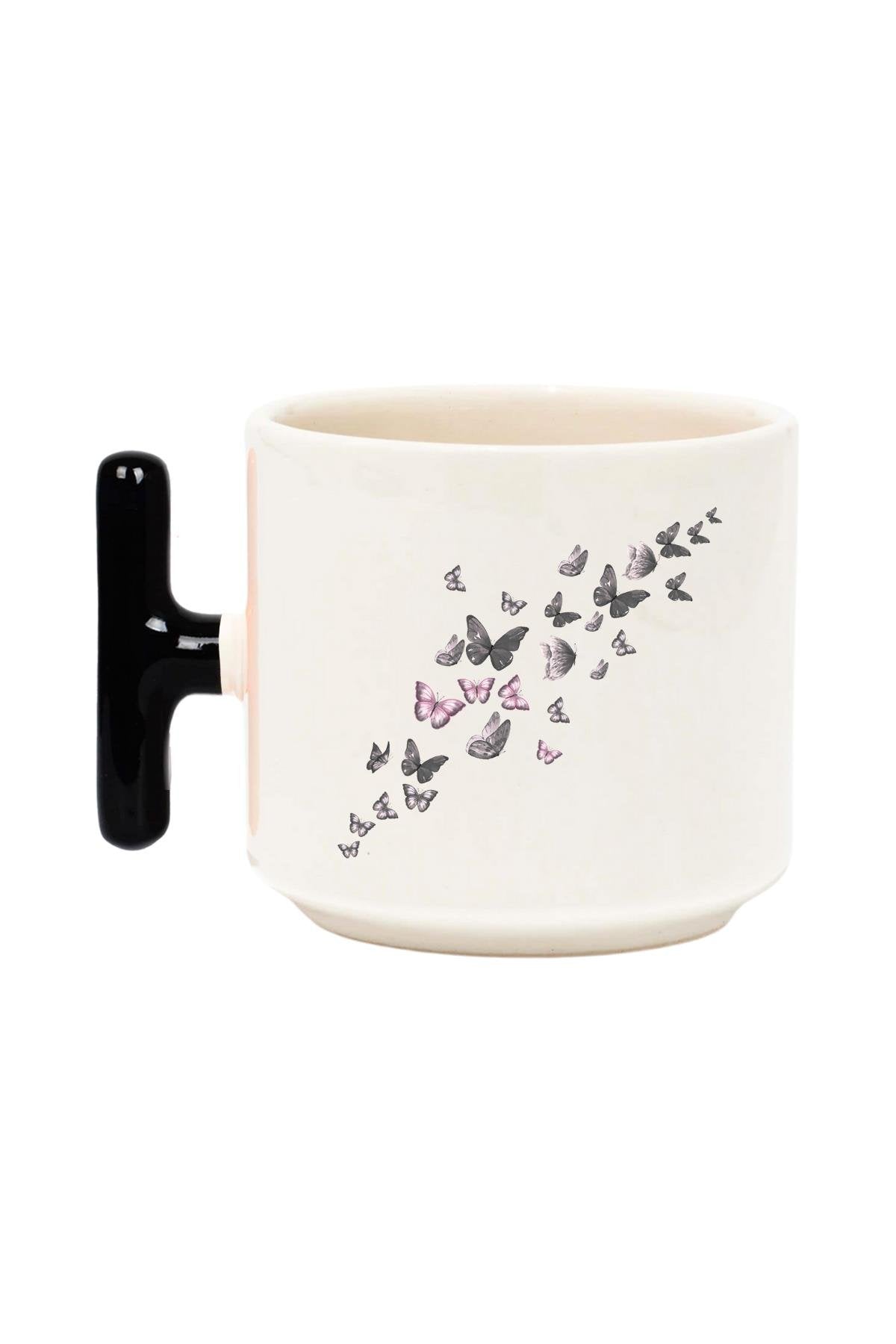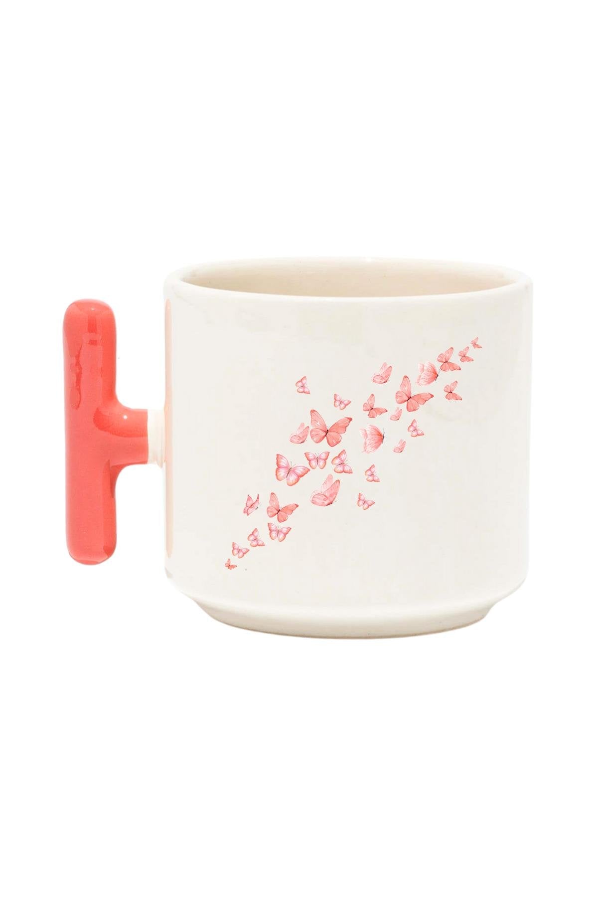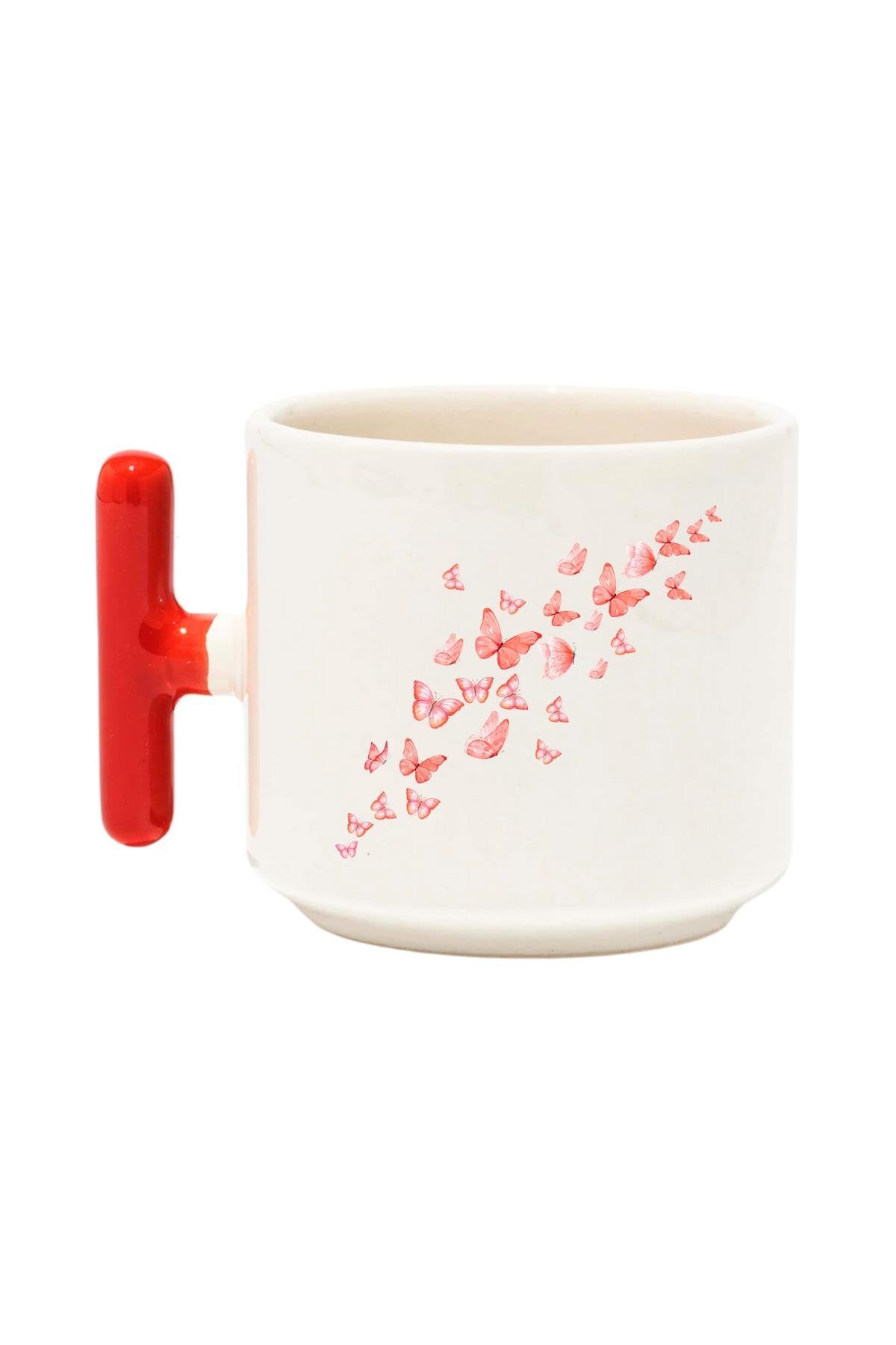 Uçan Kelebekler Baskılı Renkli T Kulplu Hediyelik Latte Fincanı Kupa Bardak