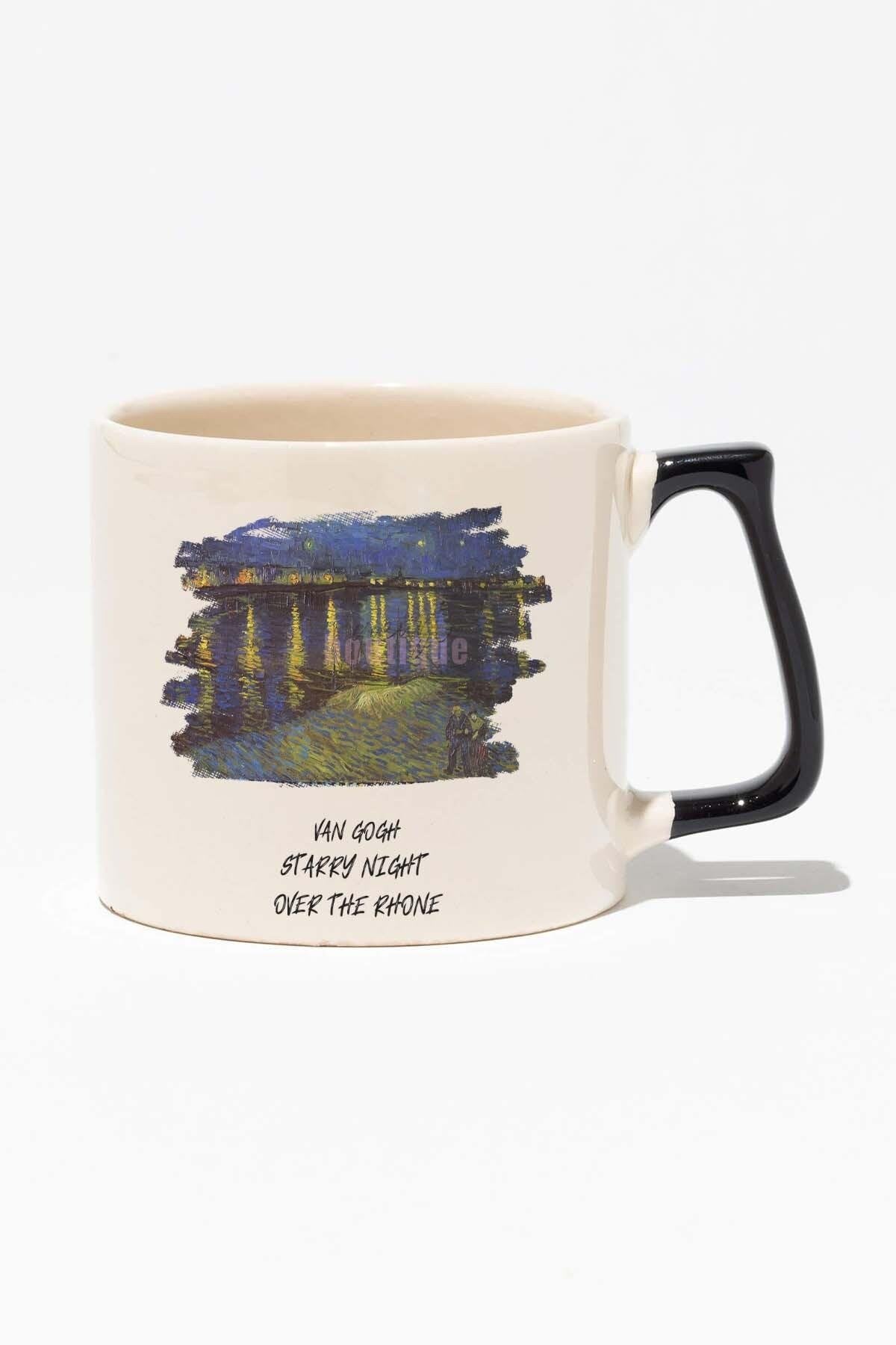 Van Gogh Temalı Starry Night Over The Rhone Baskılı Siyah Kulplu Modern Seramik Kupa