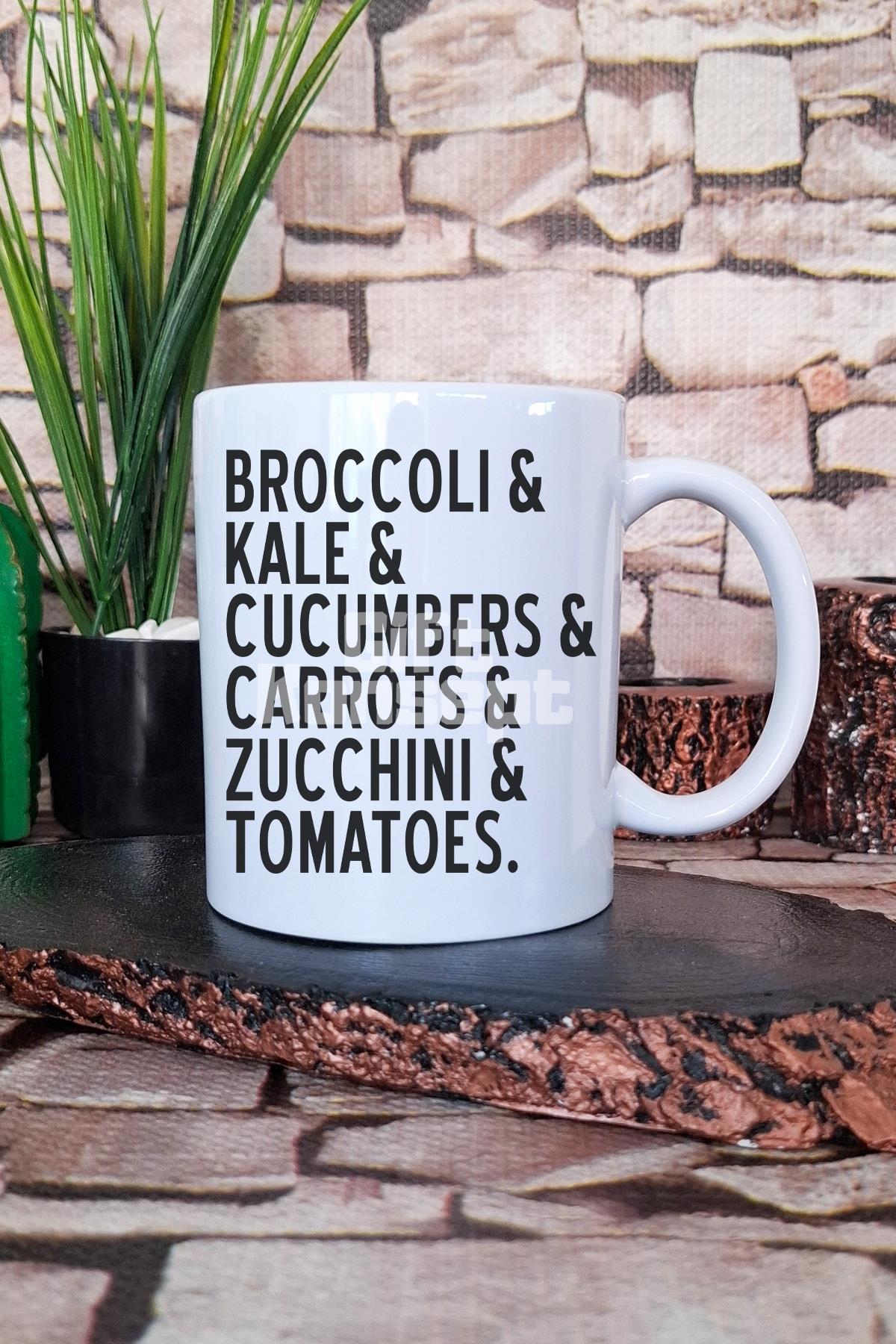 Vegan Sebzeler Hediyelik Baskılı Çay Kahve Sunum Kupa Bardak