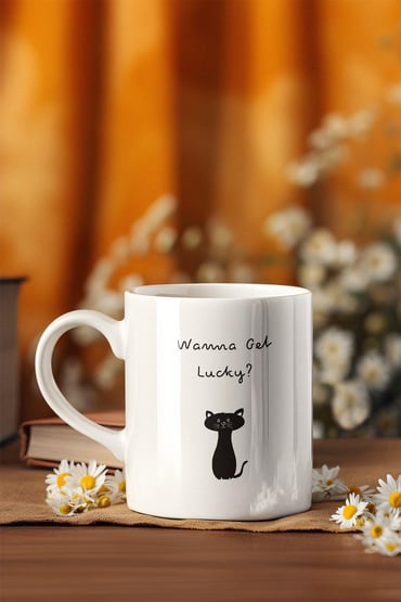 Wanne Get Lucky Şans Kedisi Baskılı Eğlenceli Beyaz Kupa Bardak