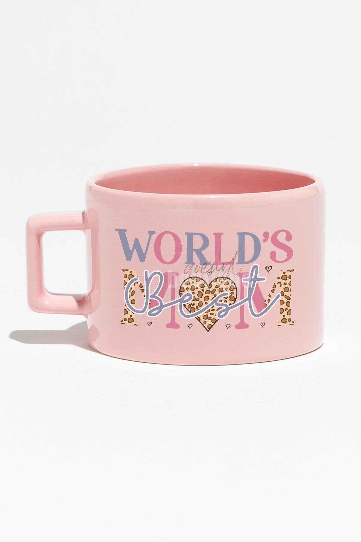 World's Best Mom Baskılı Anneler Günü Hediyelik Mavi Dikdörtgen Kulplu Fincan Kupa Bardak
