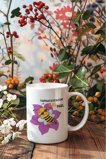 Yapmayaverecem Bal Mal-Havalı Arı Baskılı Eğlenceli Komik Hediyelik Beyaz Kupa Bardak