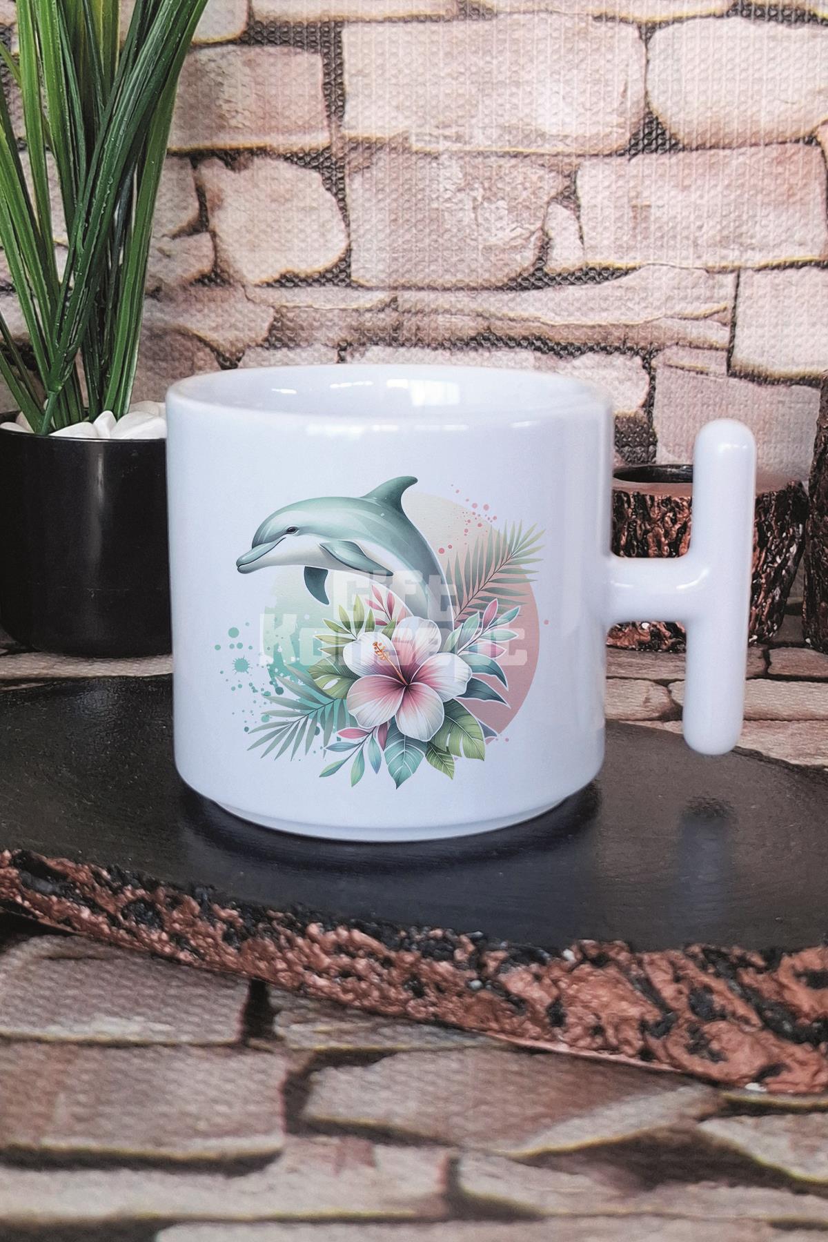 Yunus Ve Çiçekler Baskılı T Kulplu Latte Fincanı Kupa Bardak