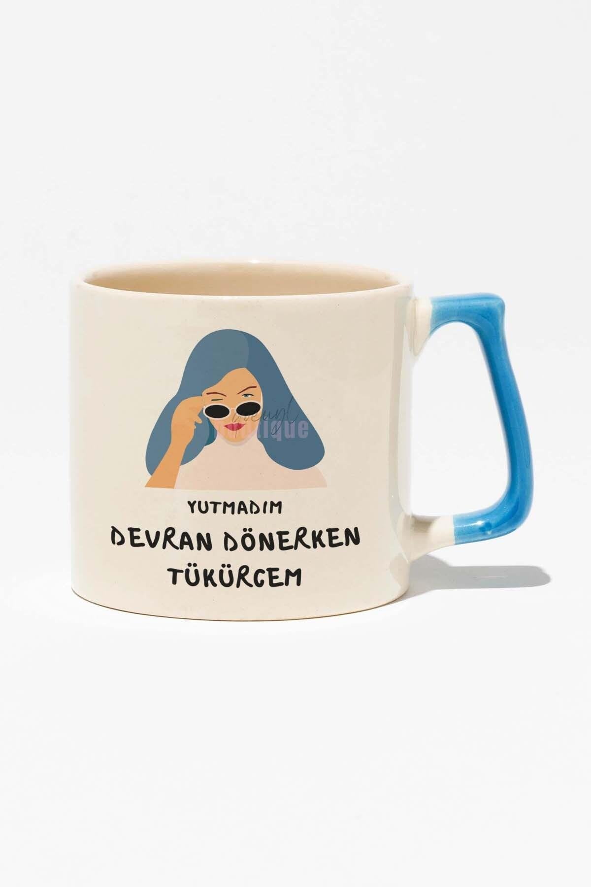 Yutmadım Bekliyorum Eğlenceli Giderli Hediyelik Beyaz Baskılı Mavi Kulplu Modern Seramik Kupa
