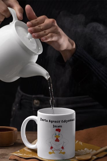 Zorla Agresif Ediyonuz İnsanı Baskılı Eğlenceli Hediyelik Beyaz Kupa Bardak