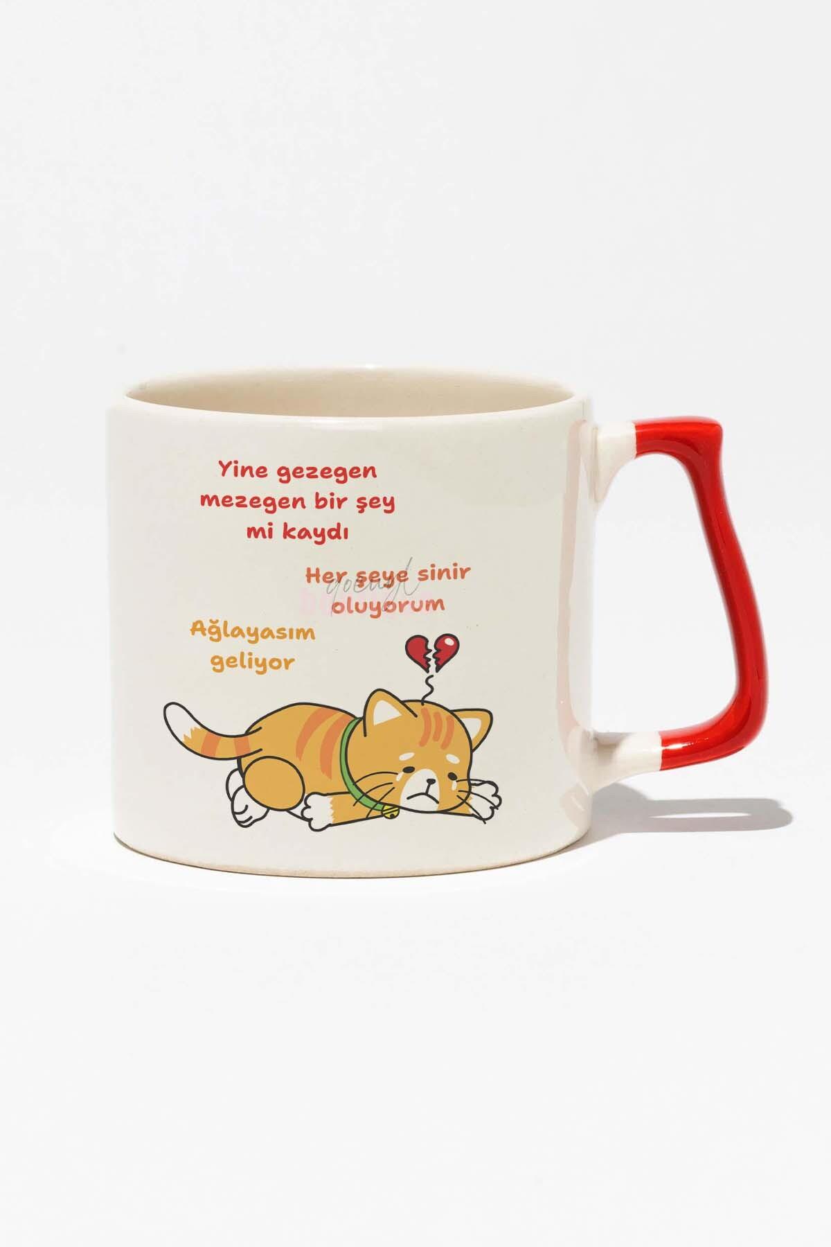 Ağlayasım Geliyor Eğlenceli Hediyelik Beyaz Baskılı Kırmızı Kulplu Modern Seramik Kupa