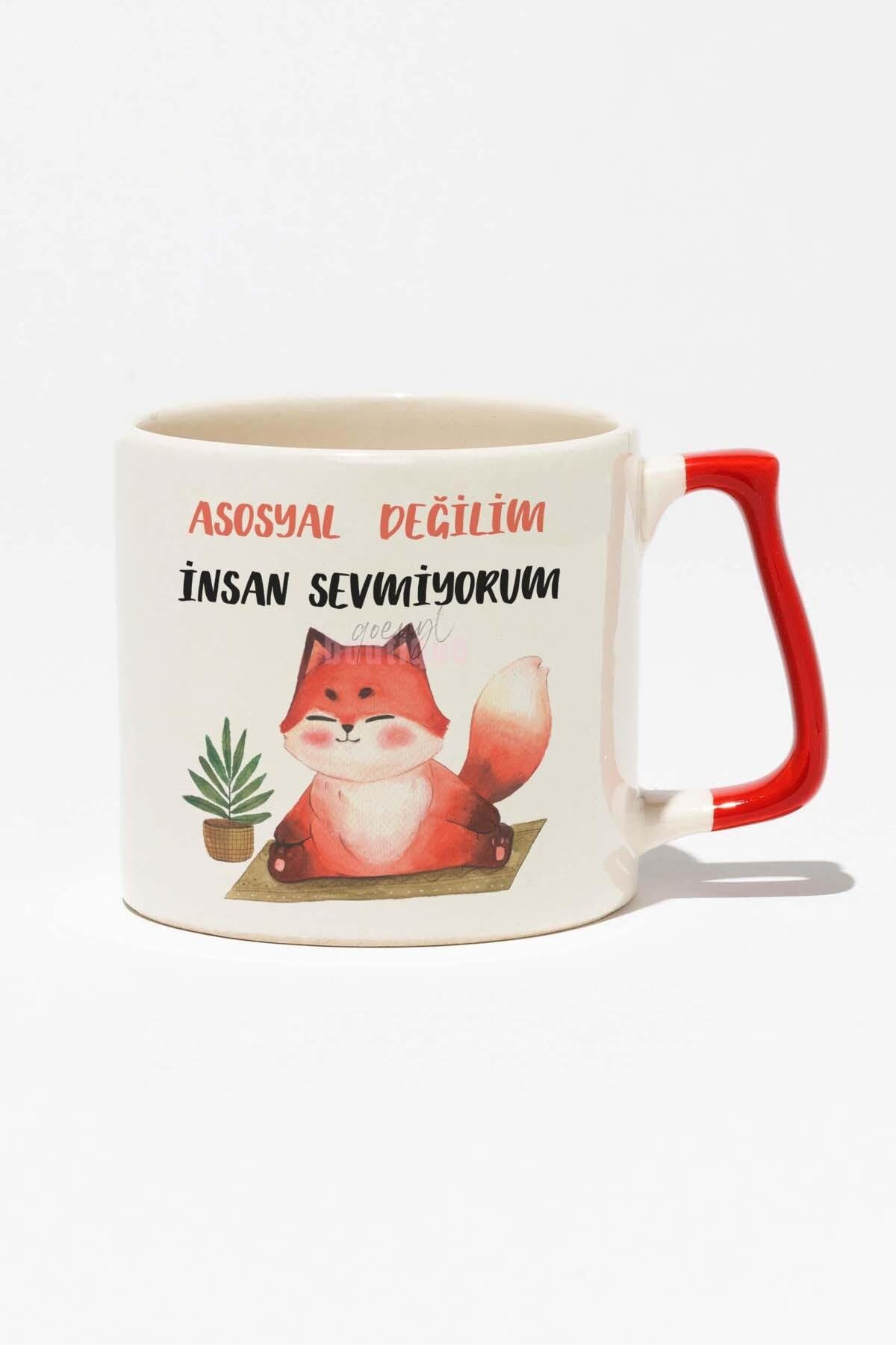 Asosyal Değilim İnsan Sevmiyorum Sincap Hediyelik Baskılı Kırmızı Kulplu Modern Seramik Kupa