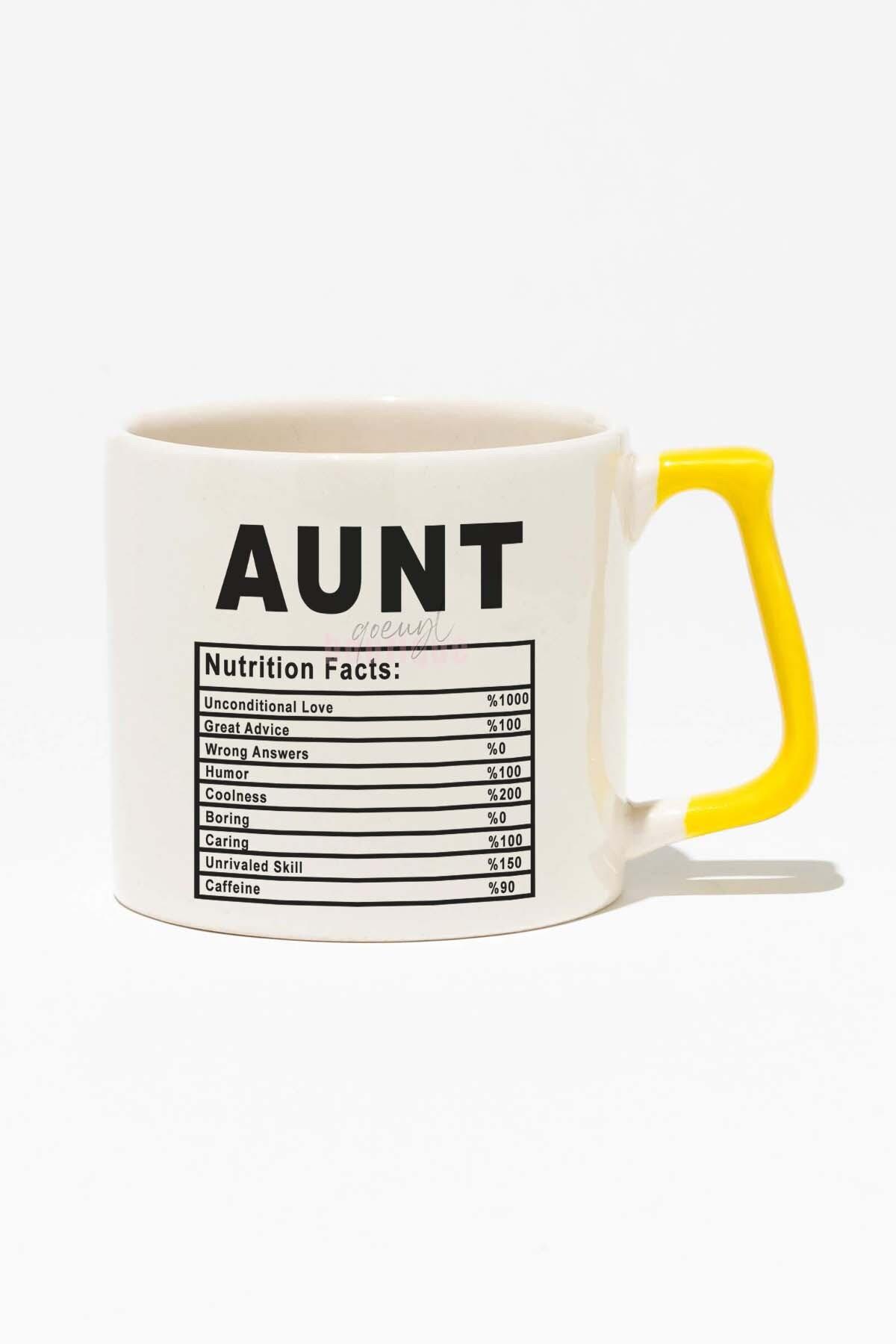 Aunt Nutrition Facts Teyze Hala Hediye Baskılı Sarı Kulplu Modern Seramik Kupa