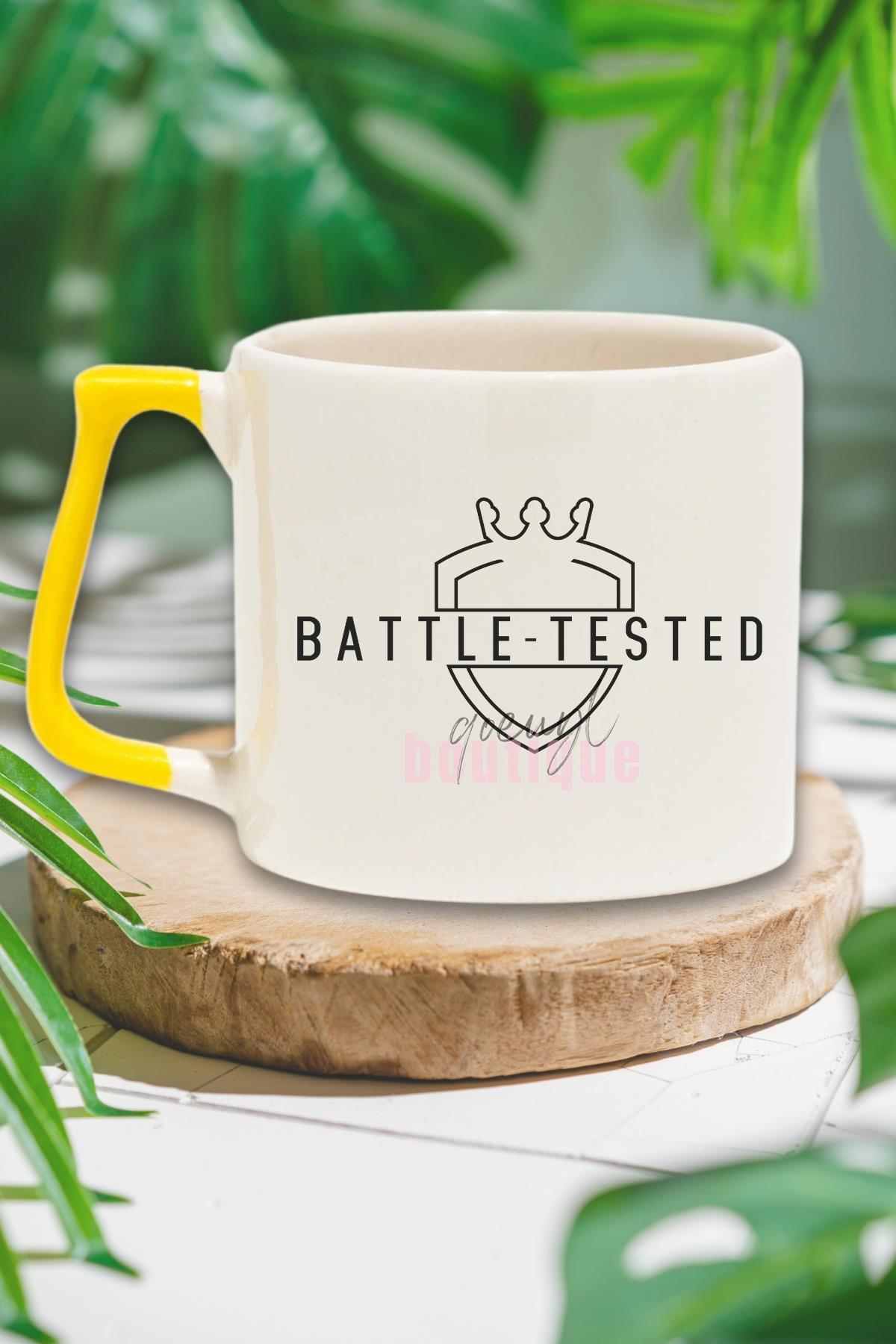 Battle Tested Yazılı Mücadeleci Motivasyon Savaşçı Ruhu Hediyelik Kulplu Kupa Bardak