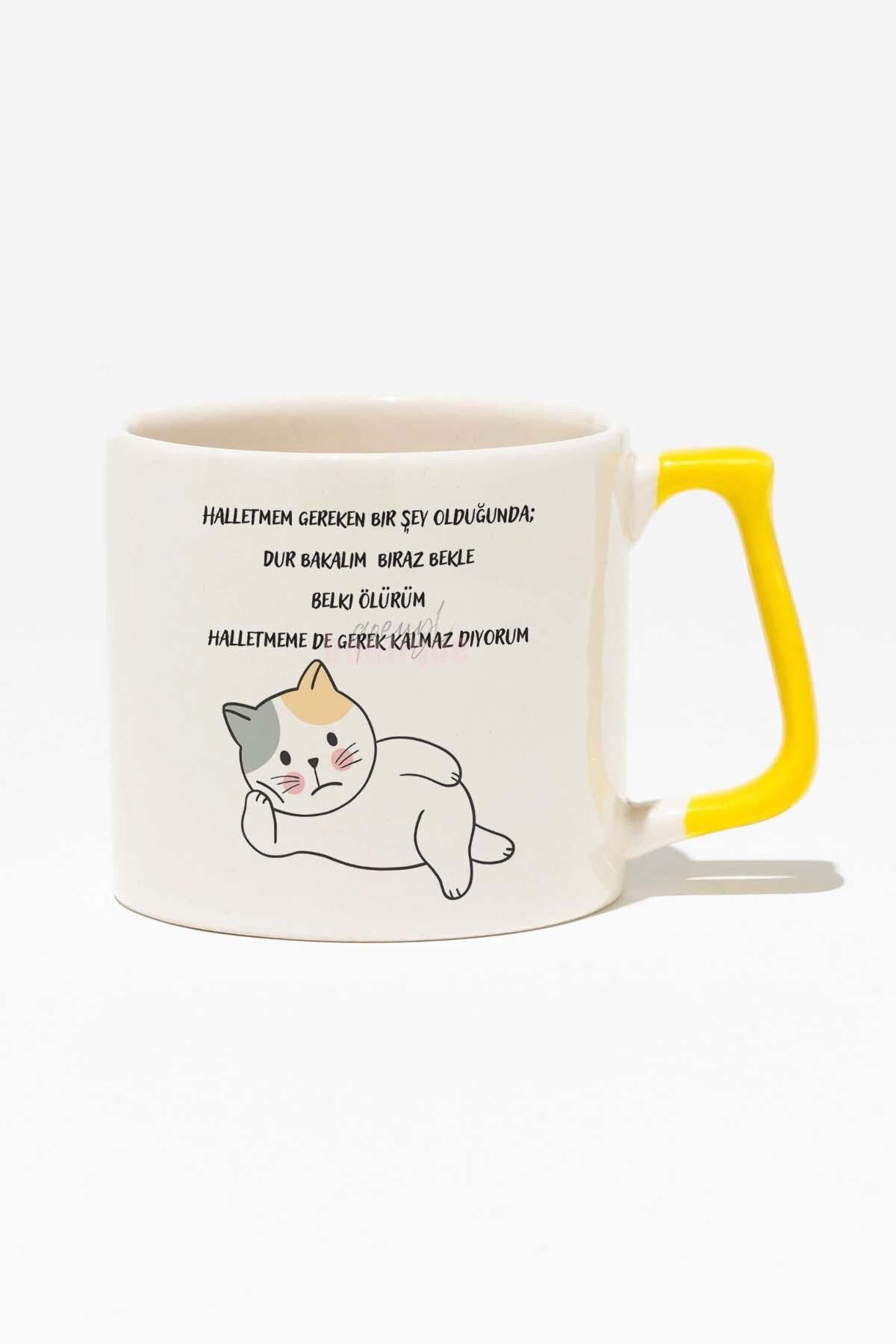 Belki Ölürüm Halletmeme Gerek Kalmaz Komik Hediyelik Baskılı Sarı Kulplu Modern Seramik Kupa
