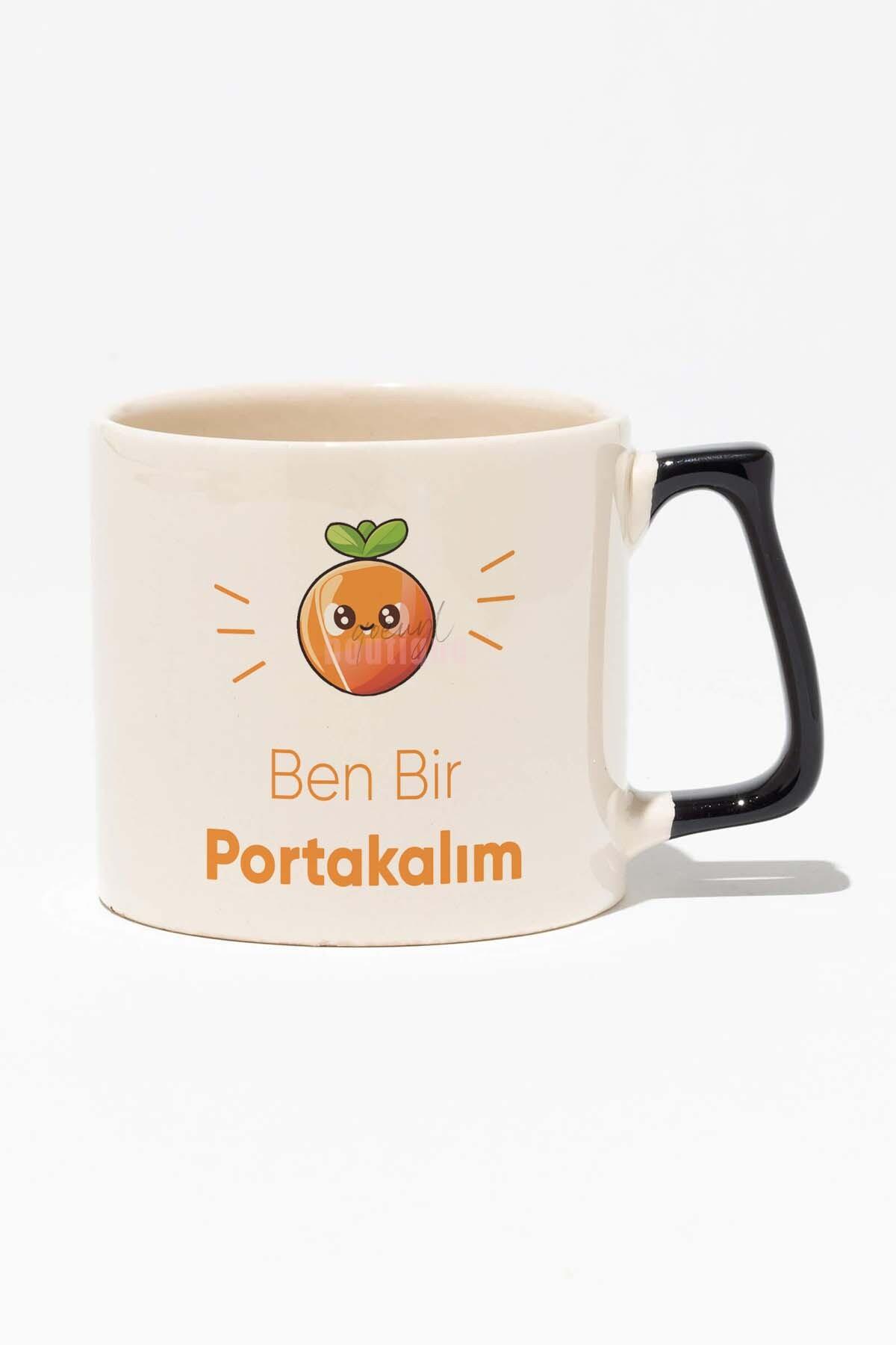 Ben Bir Portakalım Baskılı Baskılı Siyah Kulplu Modern Seramik Kupa
