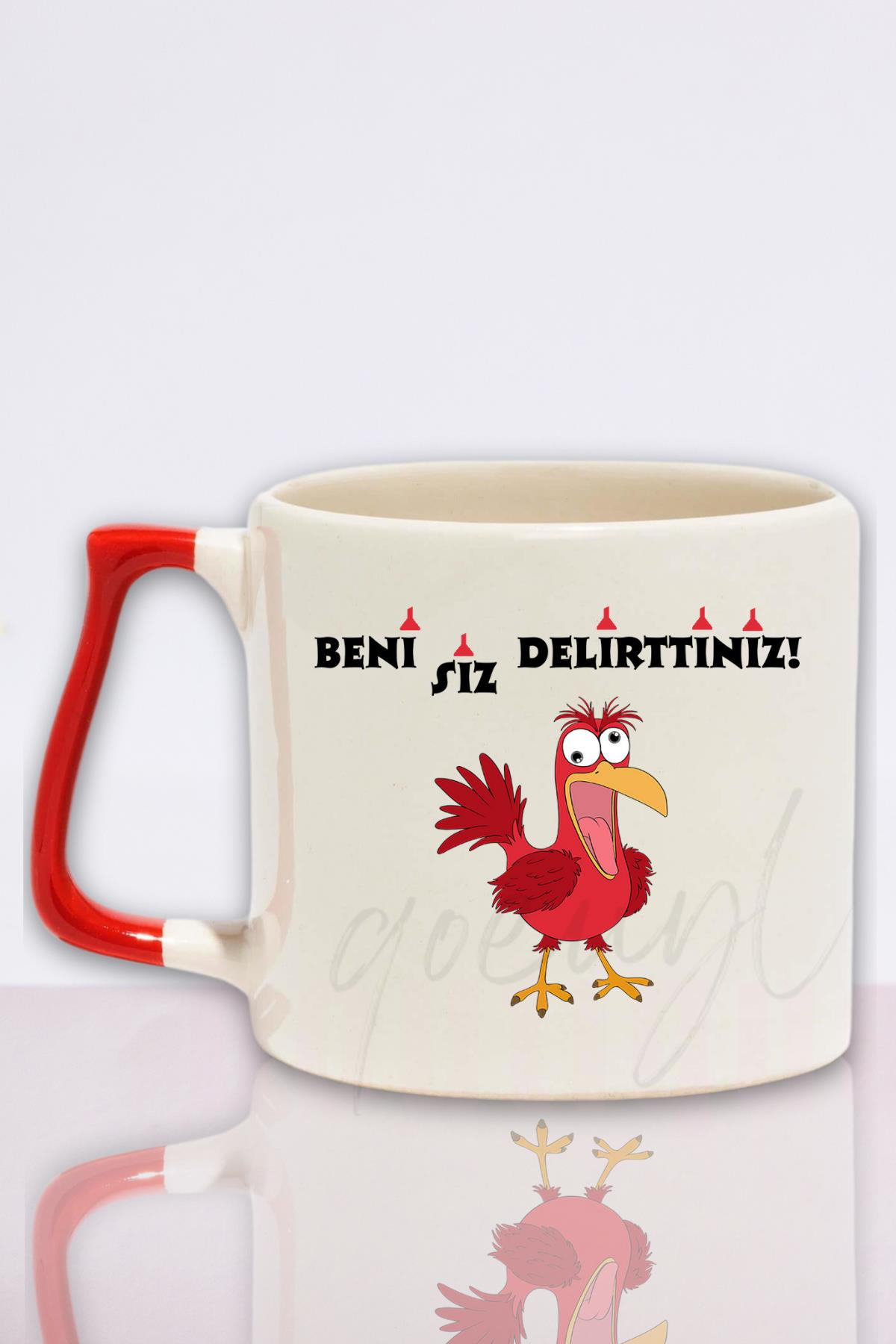 Beni Siz Delirttiniz Baskılı Komik Hediyelik Renkli Kulplu Kupa Bardak