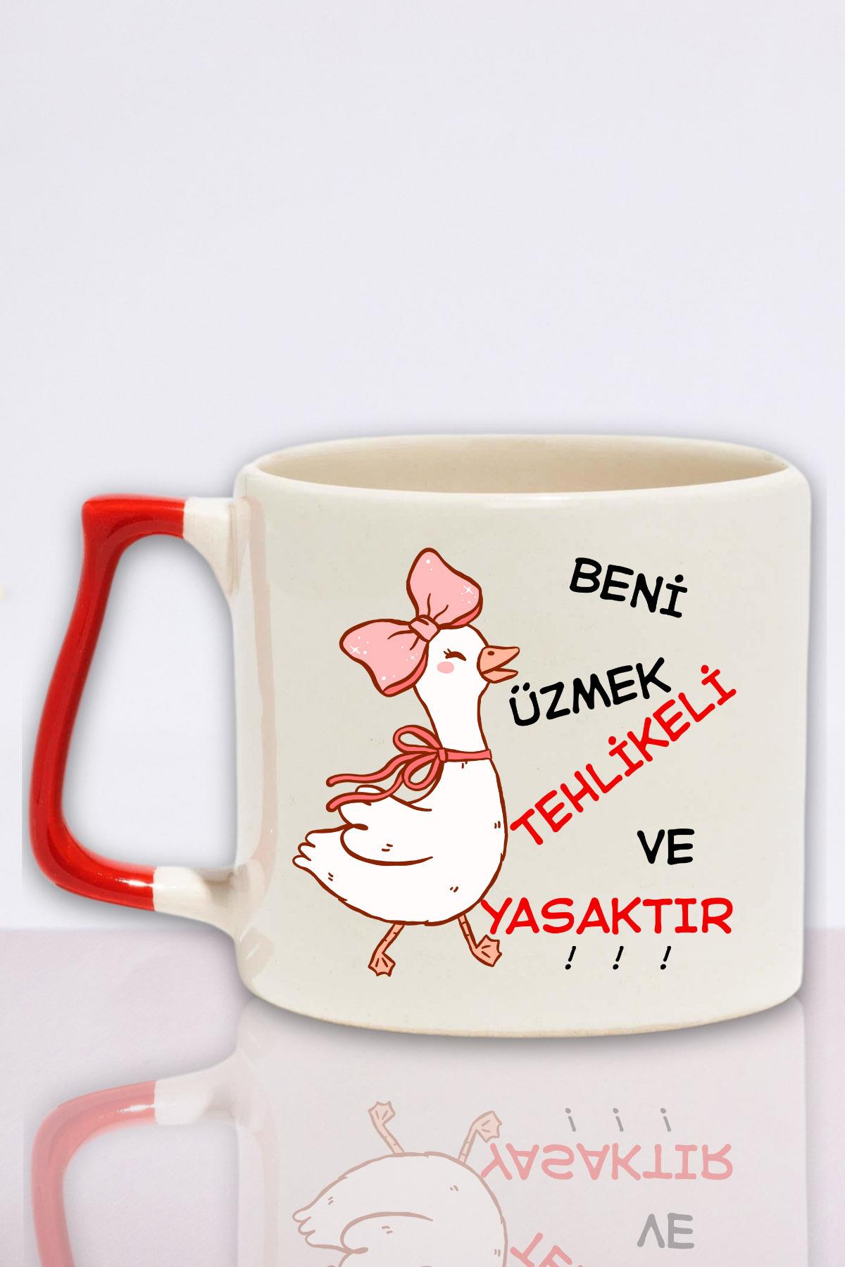 Beni Üzmek Tehlikeli ve Yasaktır Baskılı Eğlenceli Hediyelik Renkli Kulplu Kupa Bardak
