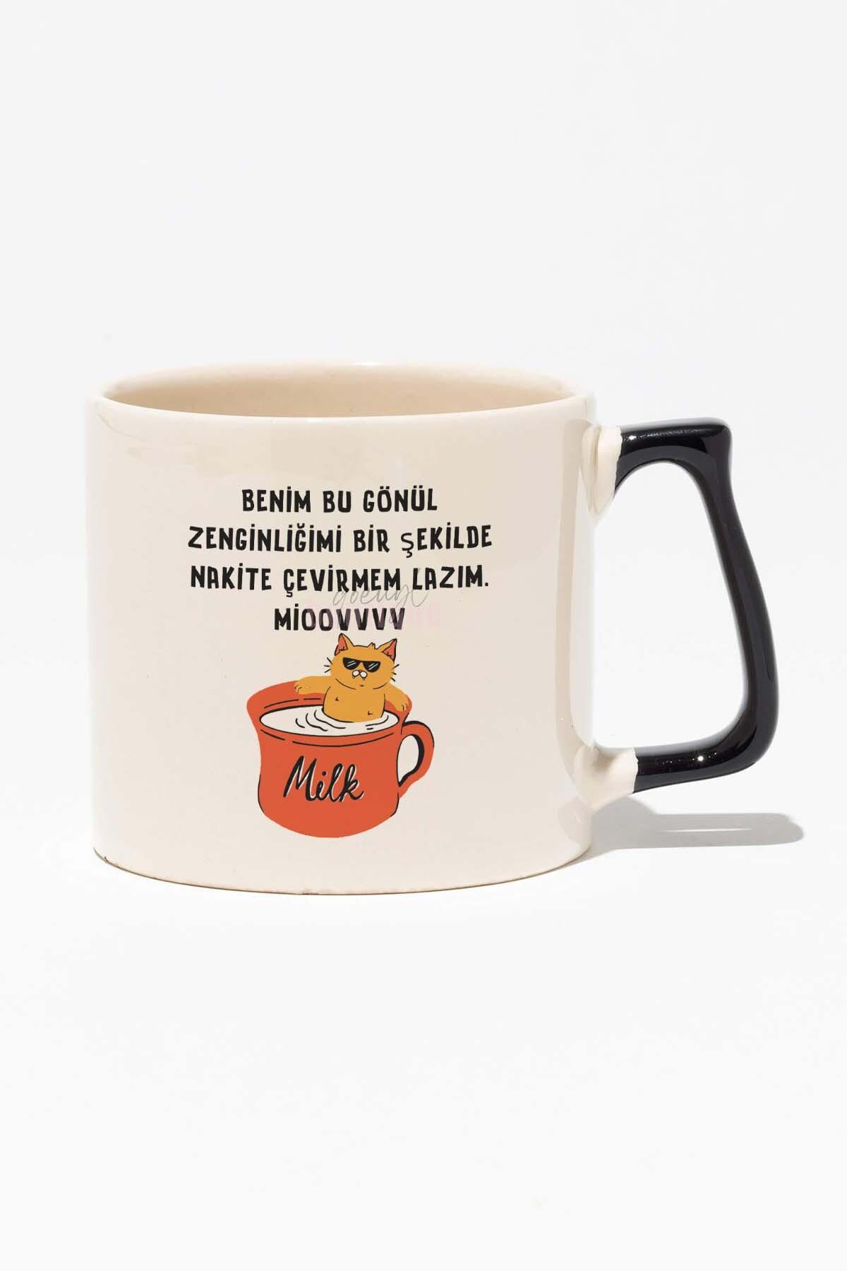 Benim Bu Gönül Zenginliğini Nakite Çevirmem Lazım Baskılı Siyah Kulplu Modern Seramik Kupa