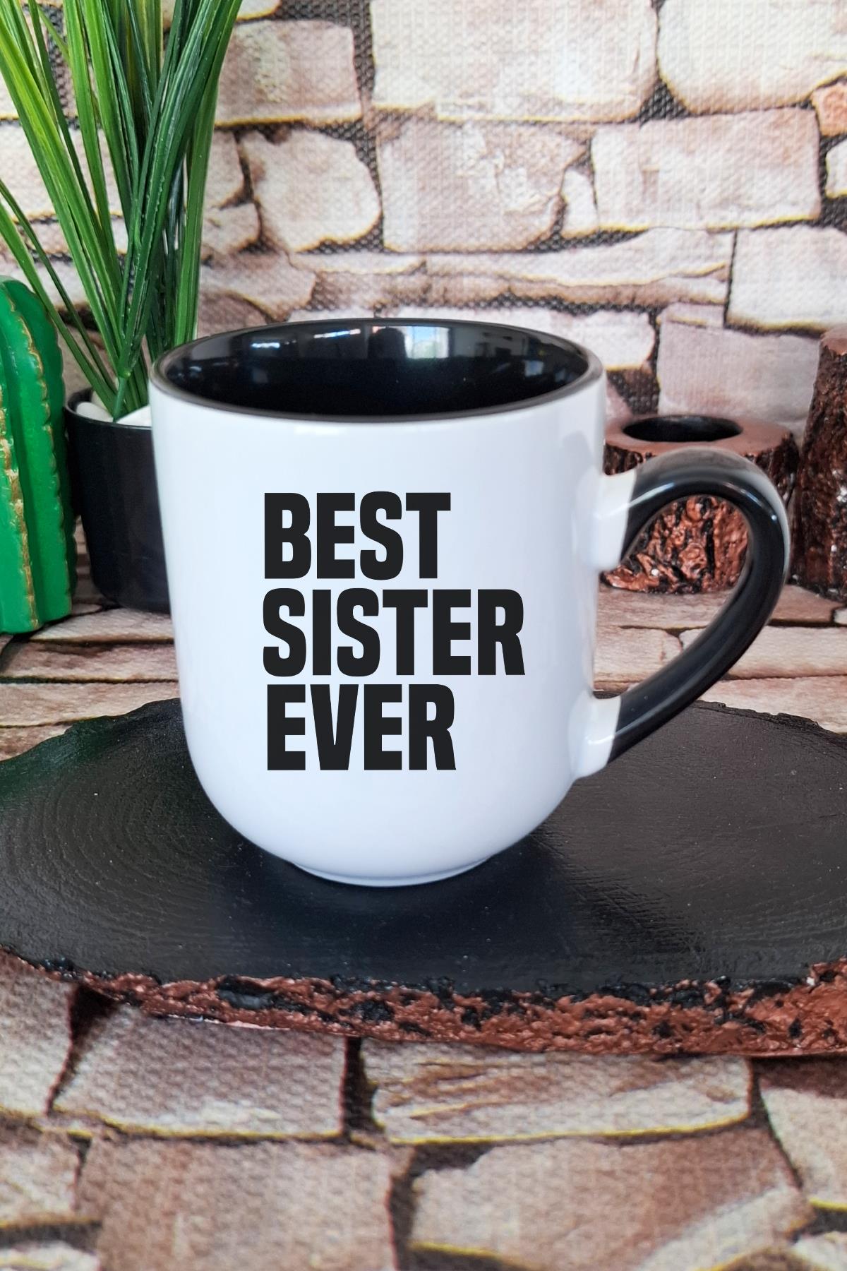 Best Sister Ever Abla Kız Kardeş Baskılı İçi ve Kulpu Siyah Renkli Premium Kupa Bardak