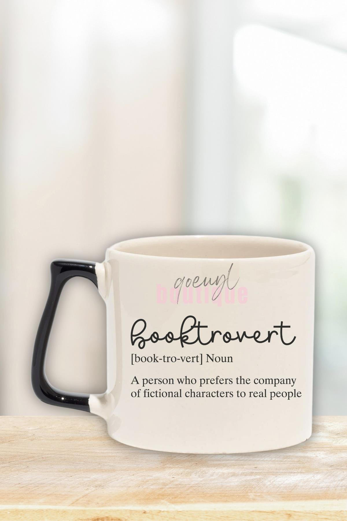 Booktrovert Noun Baskılı Kitap Sever İçe Dönük Tanımı Hediyelik Kulplu Kupa Bardak