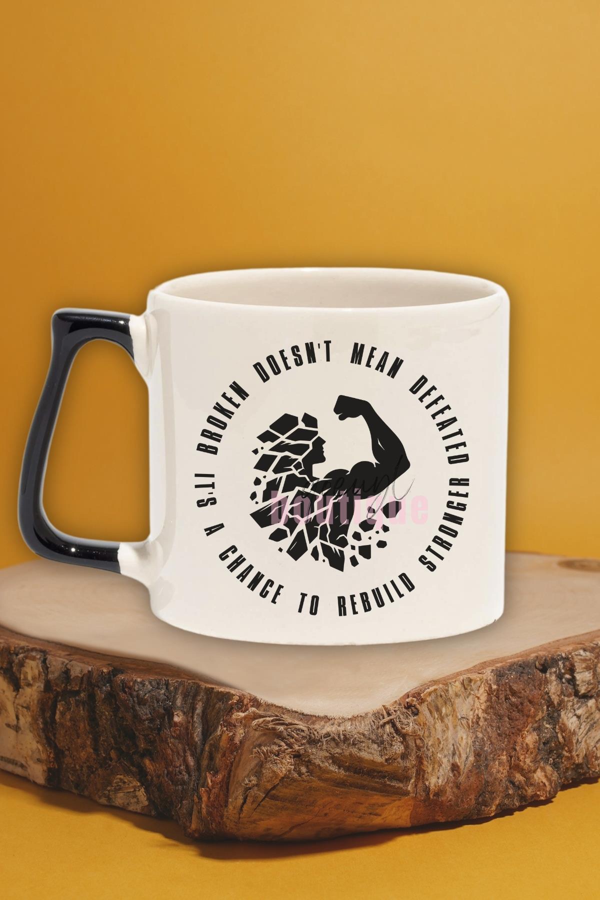 Broken Doesn't Mean Defeated Yazılı Motivasyon Güç Sözü Hediyelik Kulplu Kupa Bardak