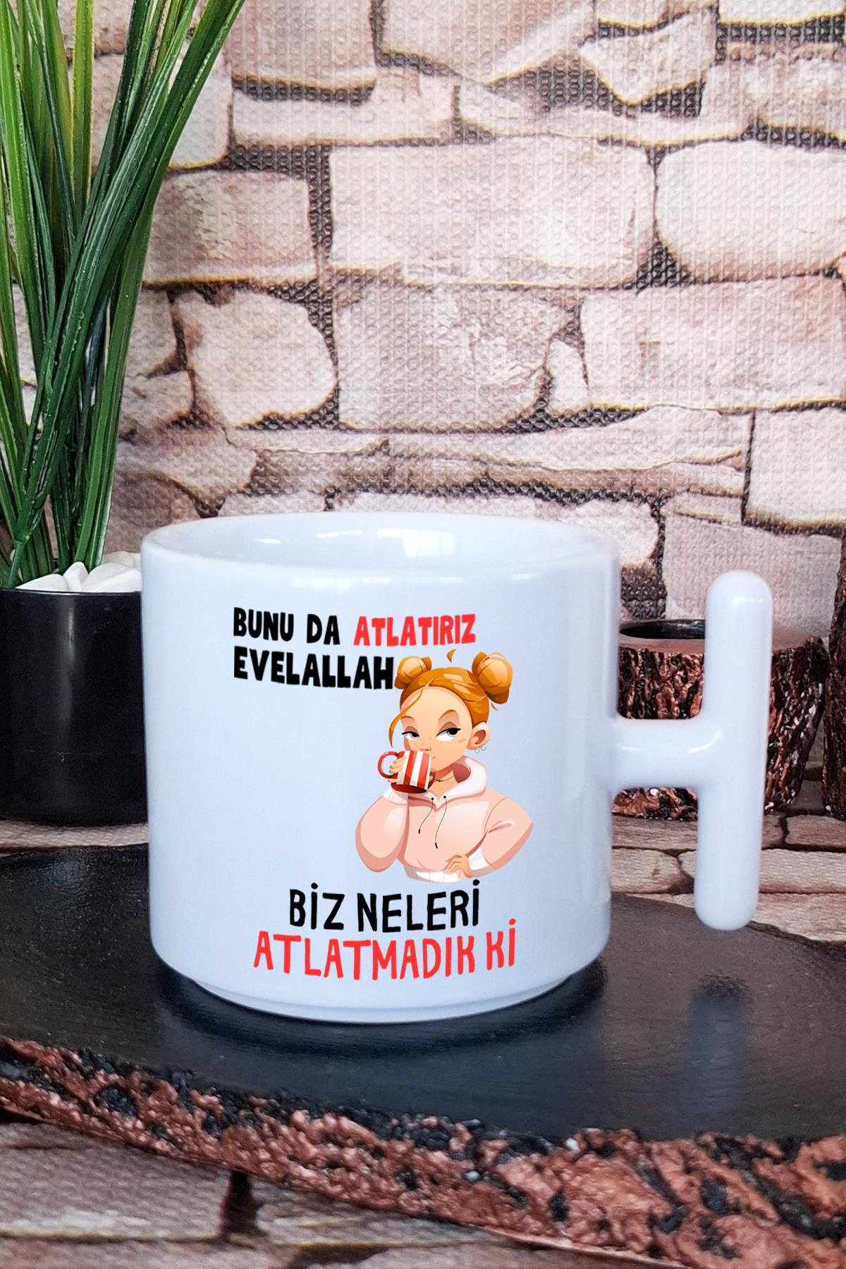 Bunu da Atlatırız Evelallah Baskılı Eğlenceli T Kulplu Latte Fincanı Kupa Bardak
