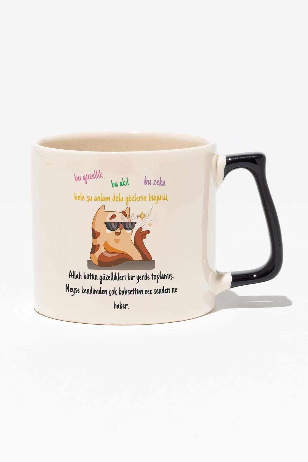 Bütün Güzellikler Bende Senden Naber Hediyelik Baskılı Siyah Kulplu Modern Seramik Kupa
