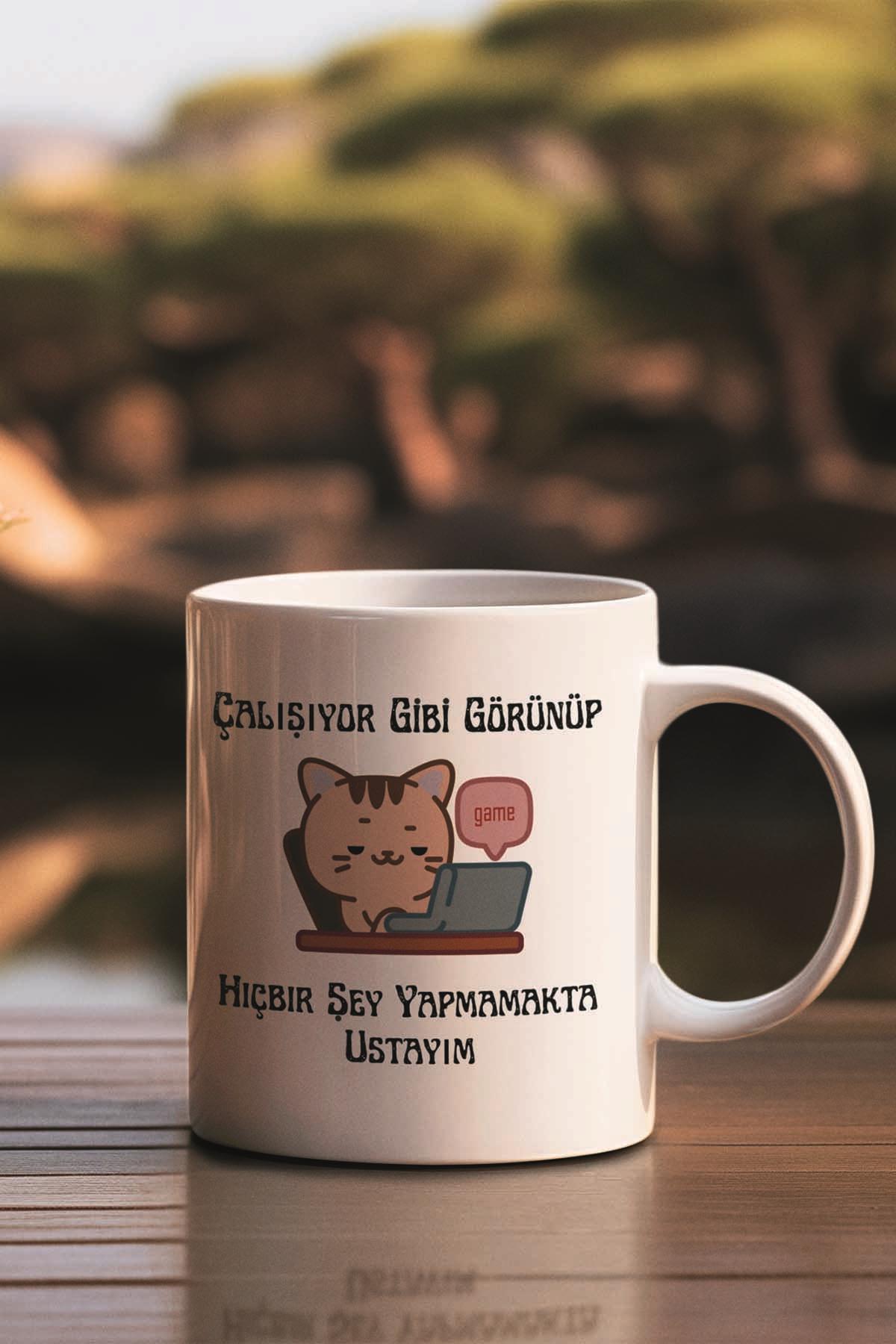 Çalışıyor Gibi Görünüp Hiç Bir Şey Yapmamakta Ustayım Komik Yazılı Kupa Bardak